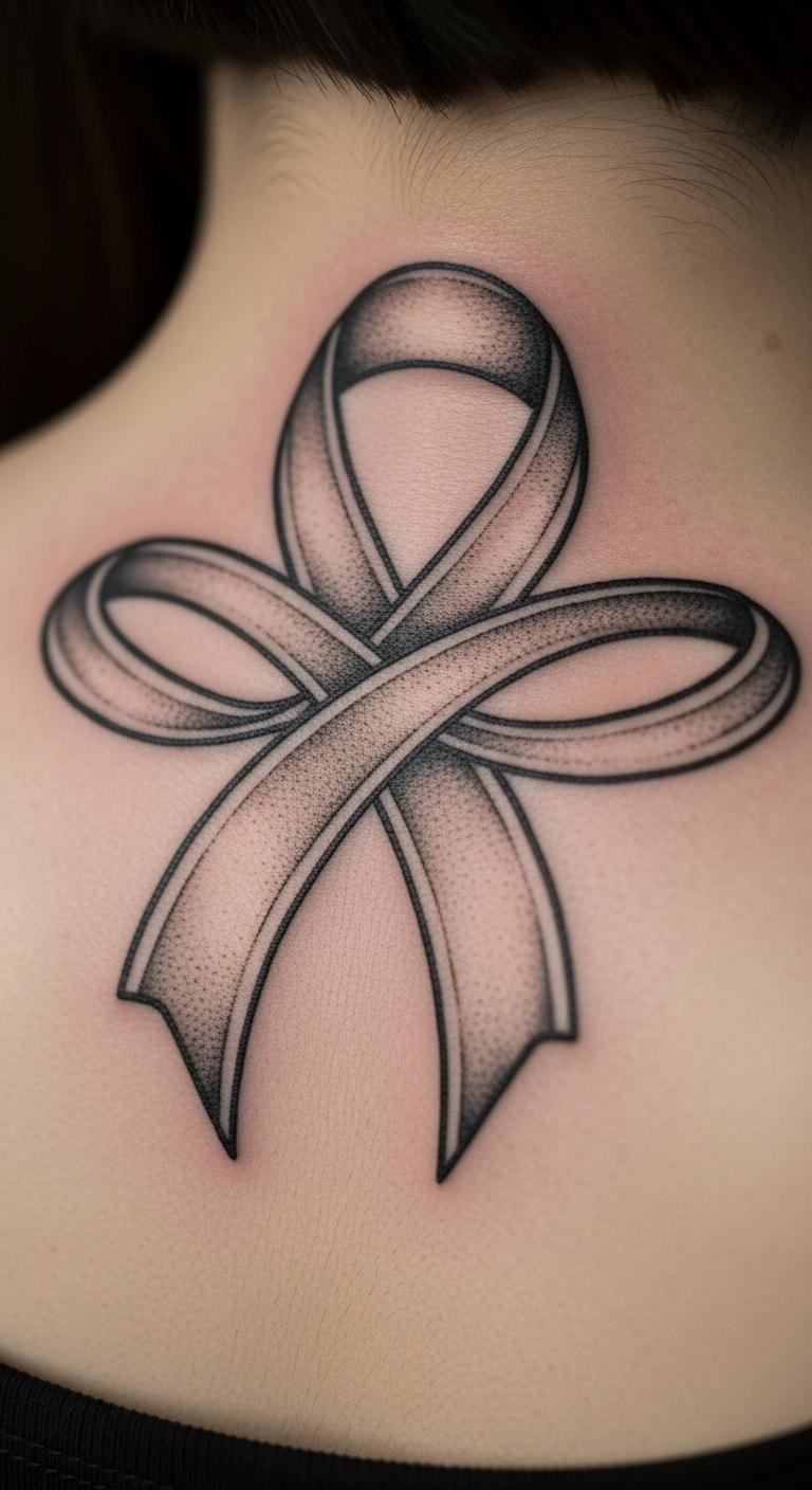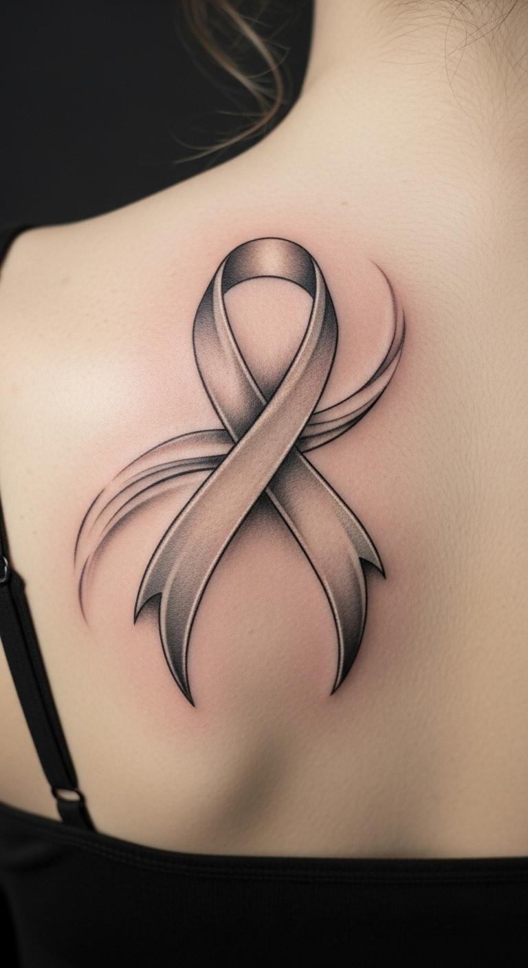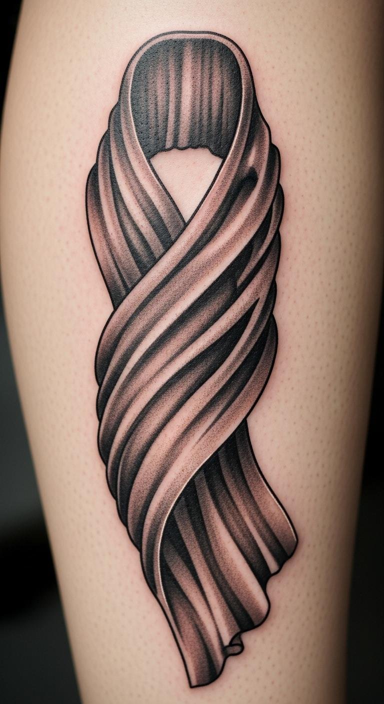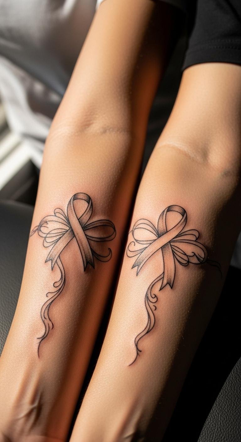 Forearm ribbon tattoo displays resilience where it counts. Choose this for a prominent spot. Begin by measuring your arm with ribbon. Apps help visualize clearly. Forearm placement boosts impact affordably. Customize with simple additions. Use templates for home practice. This option shows off strength. Go for clean lines to save. It’s great for expression. Start planning now.
