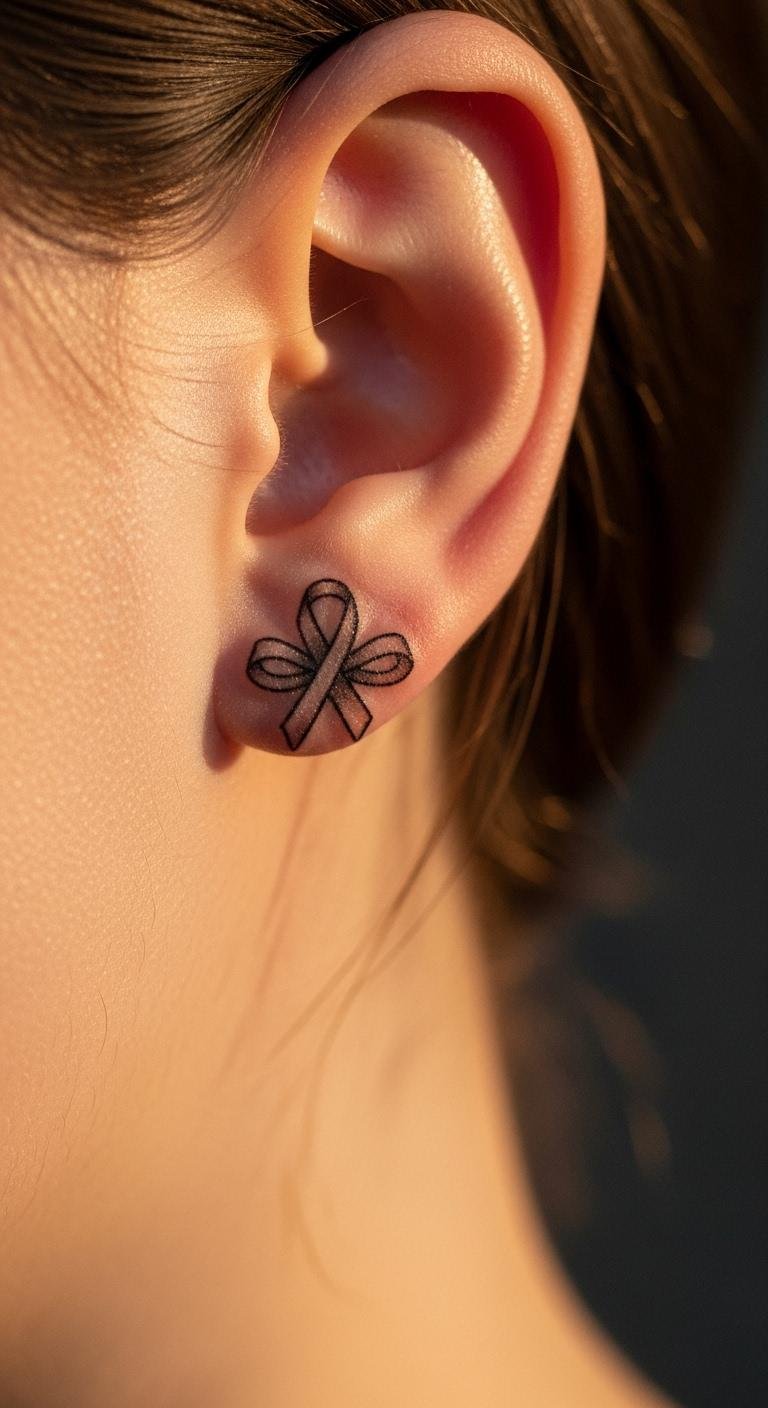 Behind the ear subtle ribbon design hides strength cleverly. Pick this for private meaning. Start by drawing near your ear. Free tools preview it fast. Ear spots keep it hidden easily. Add tiny elements at home. This fits daily life well. Keep designs minimal for cost. It’s ideal for quiet power. Try sketches right away.