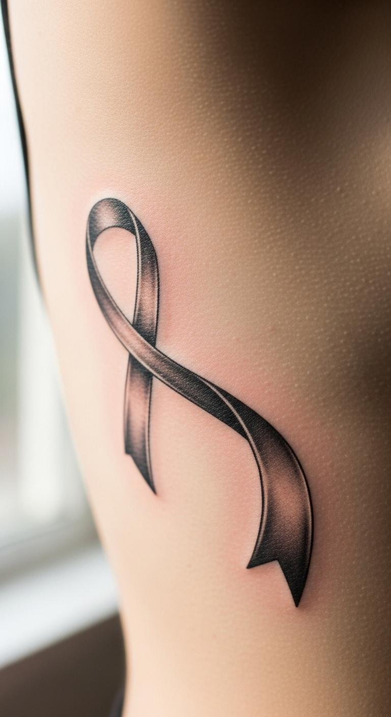Ribs for ribbon tattoos offer a deeply personal canvas. Select this for intimate strength. Begin by tracing your side with string. Apps provide accurate previews. Rib placement adds depth simply. Customize with your ideas. Use body outlines for practice. This design holds meaning close. Go basic to manage pain. It’s perfect for inner stories. Start with safe trials.