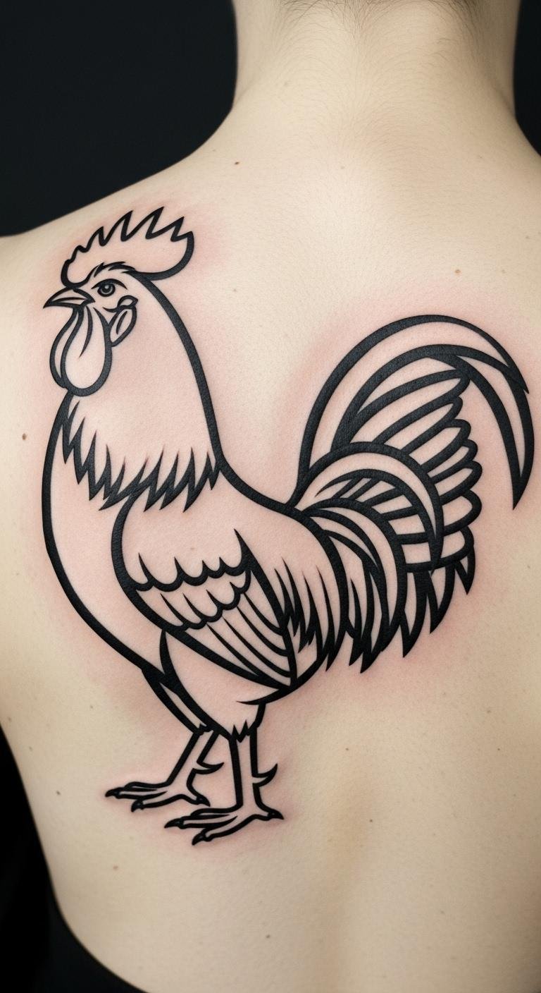 Outlined rooster with shading adds realism. Practice shading at home. Find rates around $140. Layer for effect. Place on your back for grandeur. Test with free tools. This method builds form. Schedule accordingly. Use standard care. These steps make it straightforward and impactful.