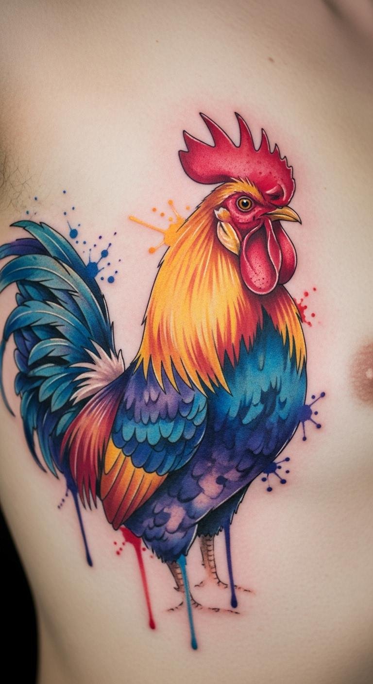 Watercolor rooster effect brings artistry alive. Experiment with watercolors at home. Find artists for $140. Blend shades softly. Position on your rib for artistry. Use apps to preview. This method adds fluidity. Book in parts. Maintain with simple supplies. These ideas keep it creative and budget-friendly.
