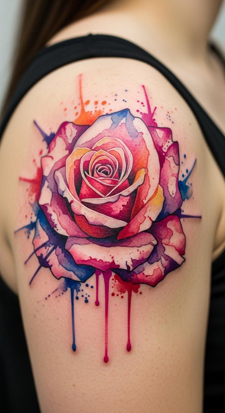 A watercolor rose on the shoulder brings art to life. Colors blend like a painting for a fun vibe. Spend about $150 for quality work. Experiment with watercolors on paper first. Place it where clothes can hide it. Blending makes it unique every time. Find budget artists at conventions. Add drops for a rainy effect. Healing needs simple lotion from the store. Try fabric markers on shirts for practice. This spot shows off in summer. Keep sessions short for comfort. Snap photos to track changes. Make it match your favorite hue.
