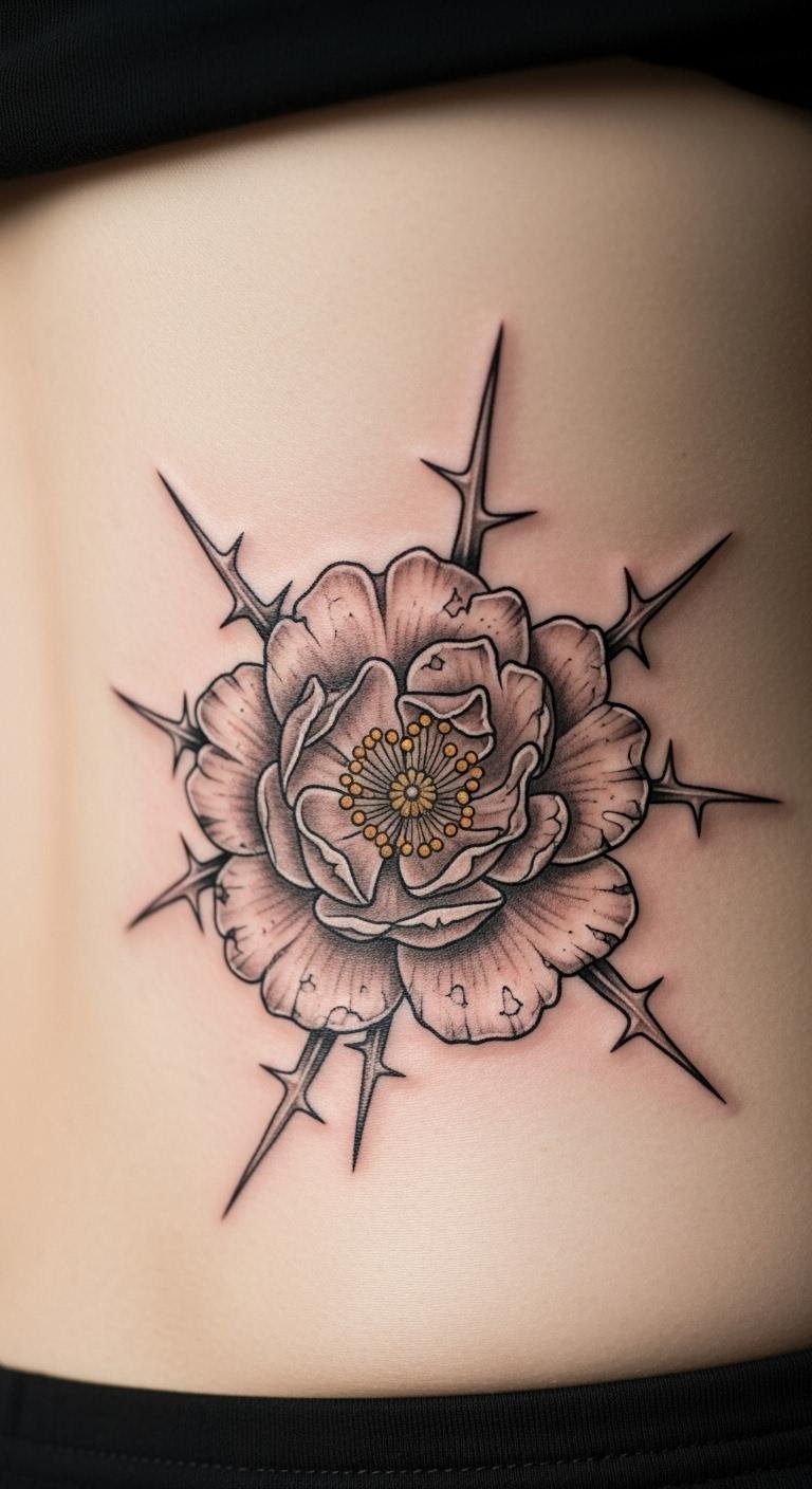 A wild rose with thorns on the lower back captures wild spirit. Thorns add realness. Try for $150 wild. Draw roughly first. Put it for back strength. Details feel authentic. Search wild-style pros. Include extra thorns. Care with back routines. Try freehand sketches. This design stands out. Plan for comfort. Get input. Make it wild expression.