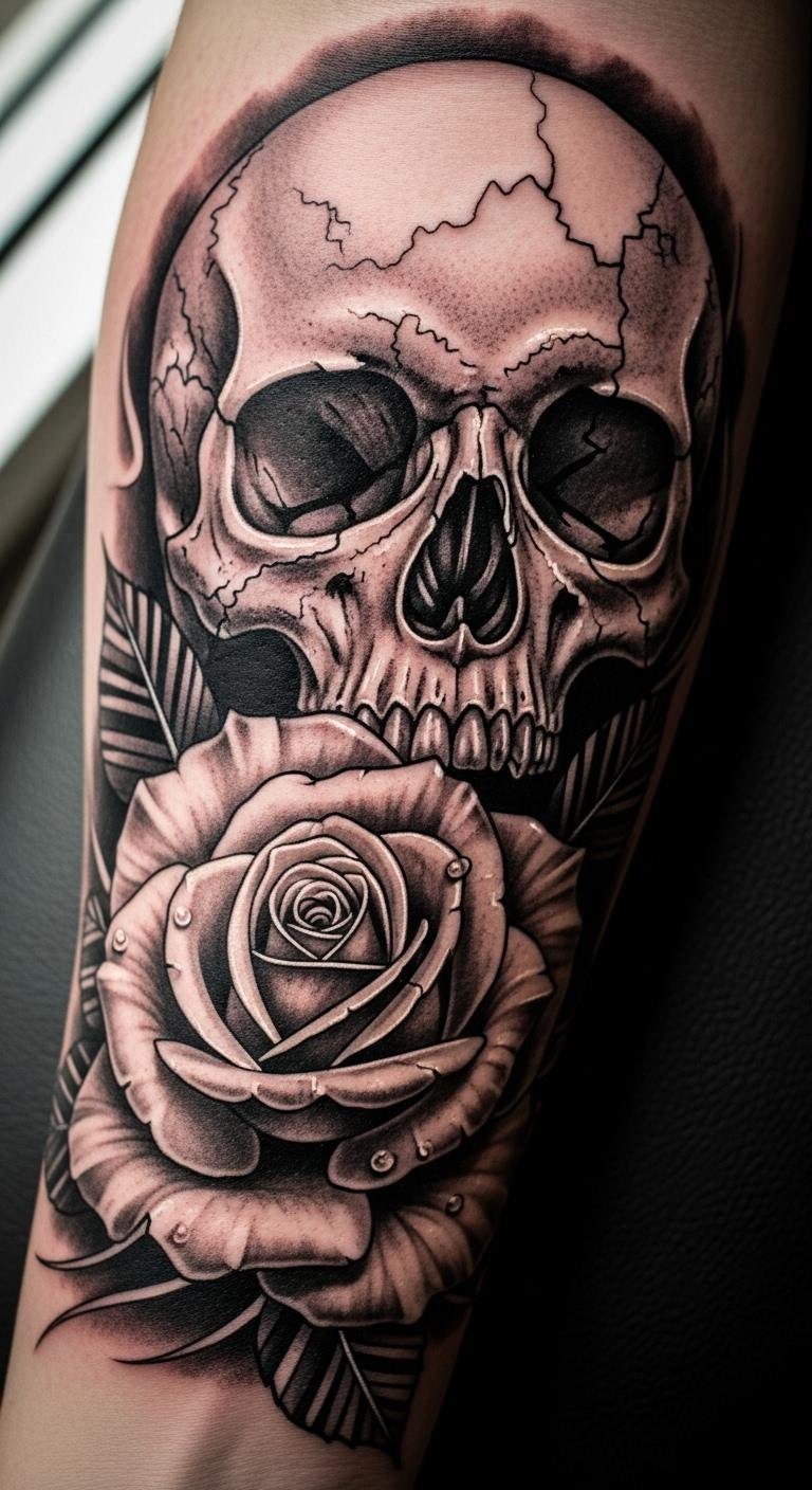 A skull and rose on the forearm mix life and mystery. This combo tells a story in one spot. Budget $120 for detailed ink. Sketch both elements on arm with a pen. Put it where you can see it daily. Shading adds depth without fuss. Search online for affordable pros. Include a small bone for interest. Healing is straightforward with basic cream. Practice with free apps for designs. This area works under long sleeves. Get it in a single visit. Show it to friends for opinions. Make it your personal symbol.
