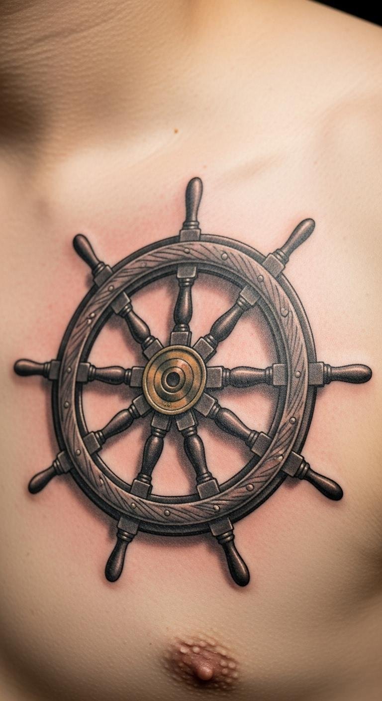 A ship’s wheel tattoo steers life’s course, like a captain at helm. Sketch it out simply. Try temporary wheels online. Place it on your chest for steering. Look for value artists. Personalize with ropes using tools. Size to 2 inches. This tattoo charts paths. Chat for cheap options. It’s a directional pick.