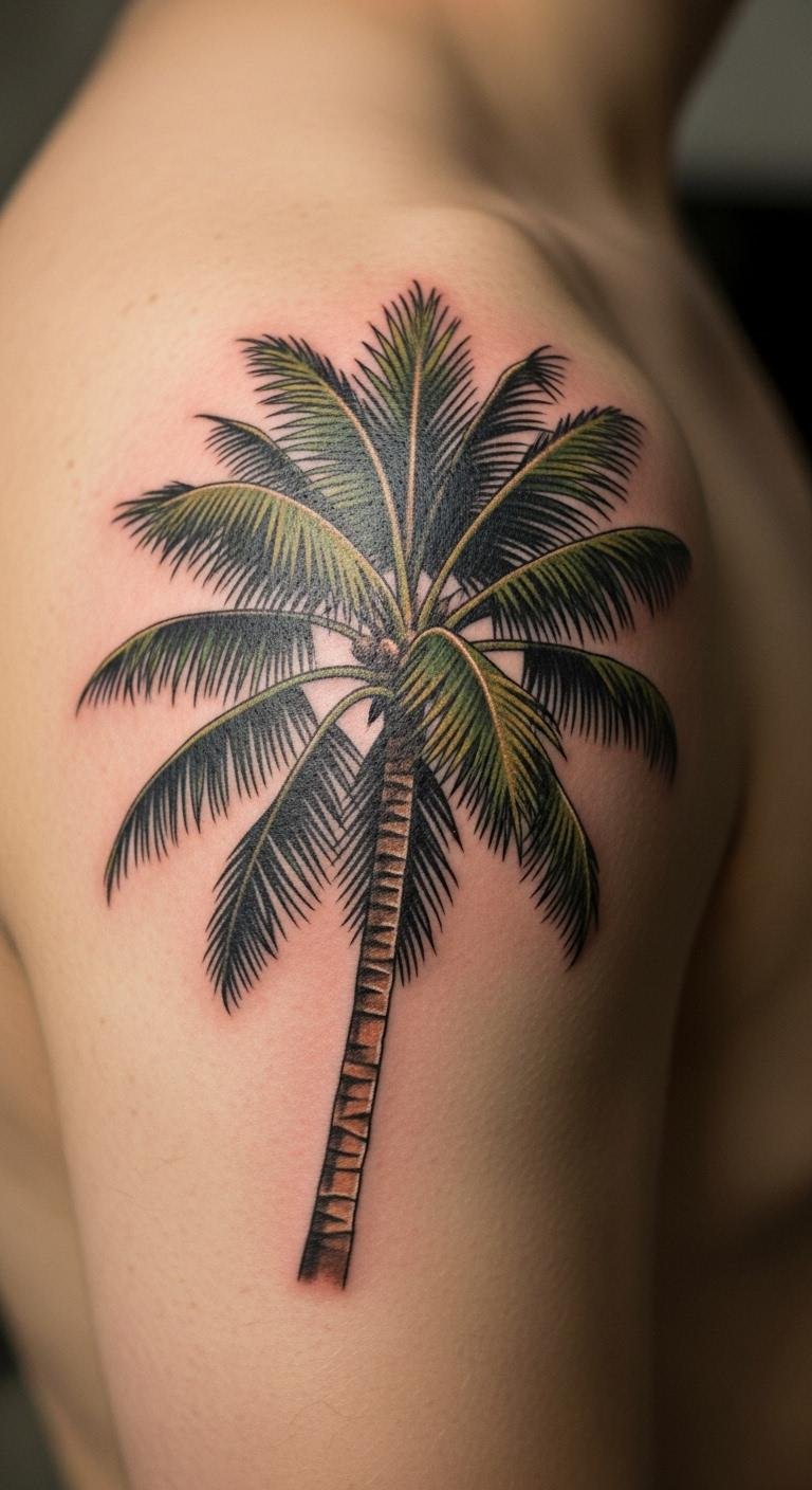 A palm tree tattoo evokes tropical escapes and relaxation. Draw it out. Get temporary designs cheaply. Place it on your shoulder for sun. Find budget artists. Customize with sand using apps. Size to 3 inches. This tattoo trees adventures. Get advice on costs. It’s a shady pick.