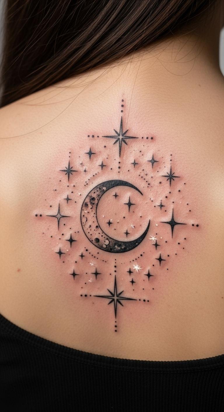 A moon and stars tattoo lights night voyages with wonder. Plan with a drawing. Use affordable decals. Put it on your back vast. Look for deals. Add phases with free tools. Go for 2 inches. This tattoo stars dreams. Ask for tips. It’s a cosmic choice.
