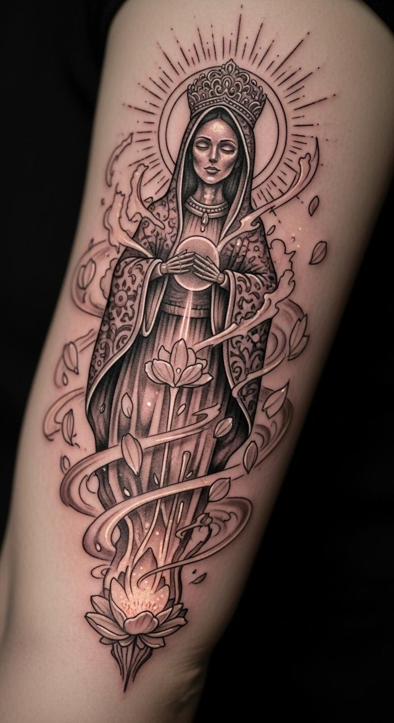 Make Santa Muerte tattoos wearable for everyday use. Put it in a visible spot for constant presence. This design adapts well. Draw versions that suit your routine. Keep them subtle. Use clothing tests for free ideas. Find artists who specialize in discreet work. Adjust for your lifestyle. It’s straightforward and useful.