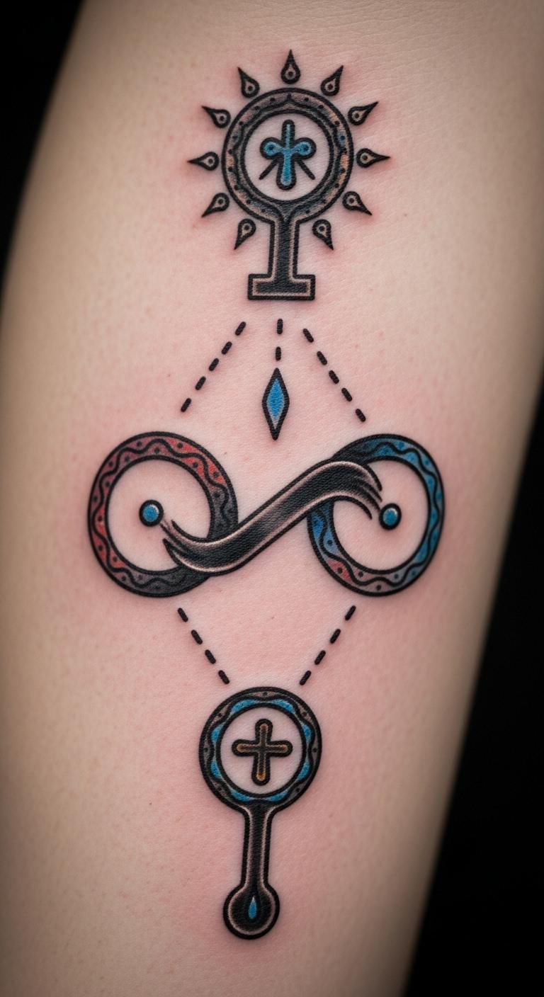 A balance scale in these tattoos stands for fairness and equality. Position it on your hand for daily reminders. It reflects inner strength clearly. Draw a basic scale at home using ruler lines on paper. Keep it balanced and simple. For thrifty options, trace from books you own. Share with a tattoo pro for quick, cheap ink. Combine with other symbols for layers. This method helps you stay true to your values without breaking the bank.