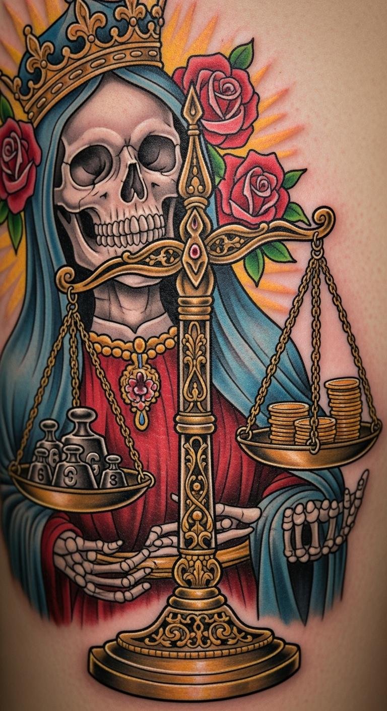 End with a fused Santa Muerte tattoo that ties it all together. Choose a spot that feels right. This design completes your vision. Combine elements in one sketch. Make it harmonious. Practice with combined tools at home. Bring the full plan to an artist. Enjoy the result affordably. This wraps up your ink story neatly.