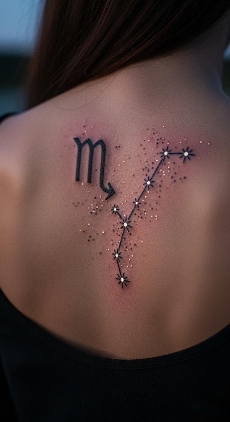 Stars and dots make a constellation tattoo pop. Map out the stars on paper first. It’s a cheap way to plan—free with pen and paper. Choose your back for a big canvas. Bold the key: connect the dots. Try a DIY star chart app to guide you. This cuts design costs. Place it where you can see it often. It’s an easy step to show your astrological roots.