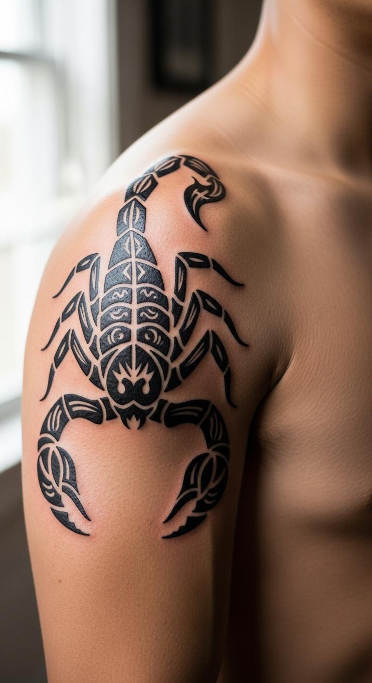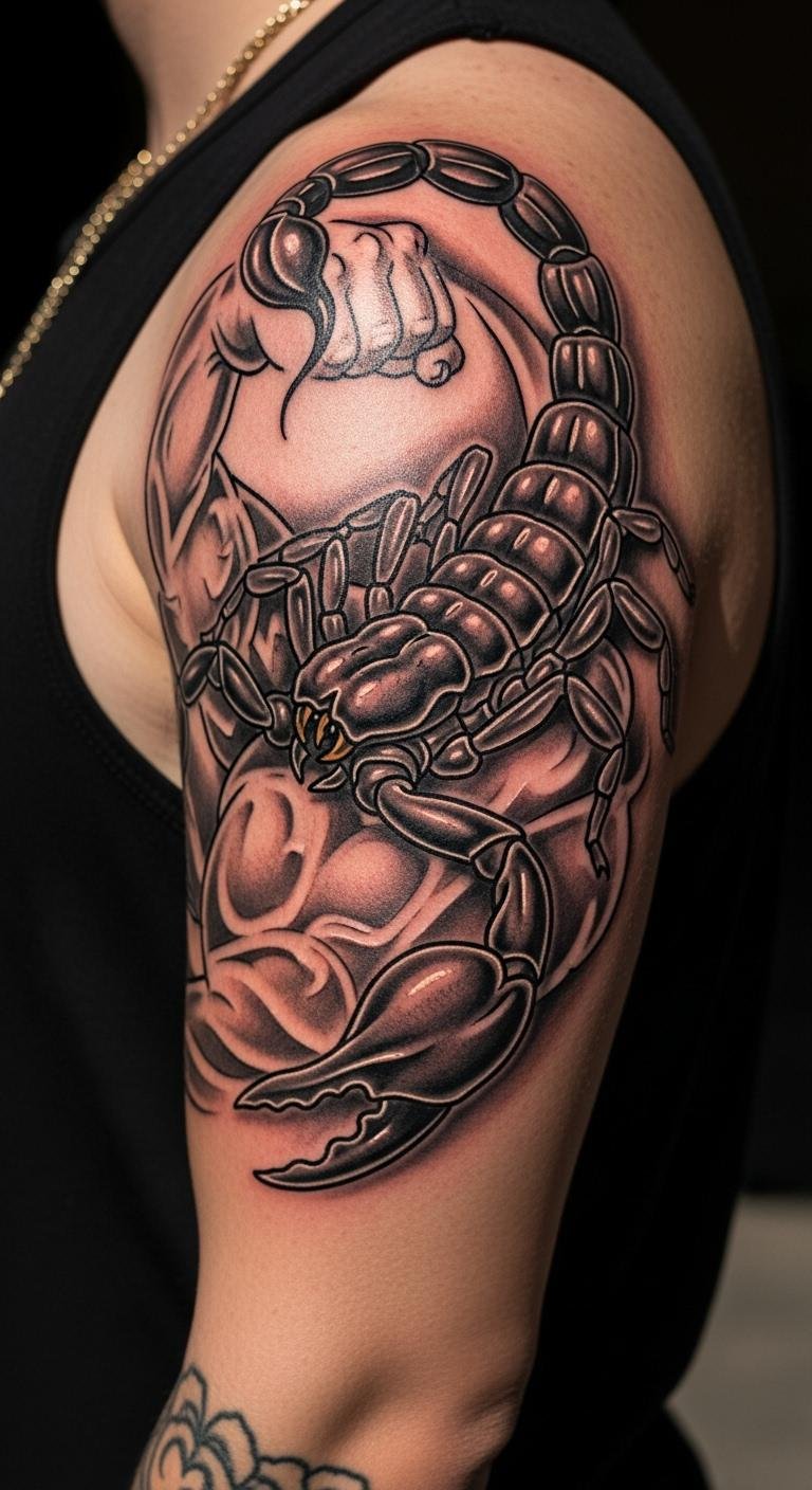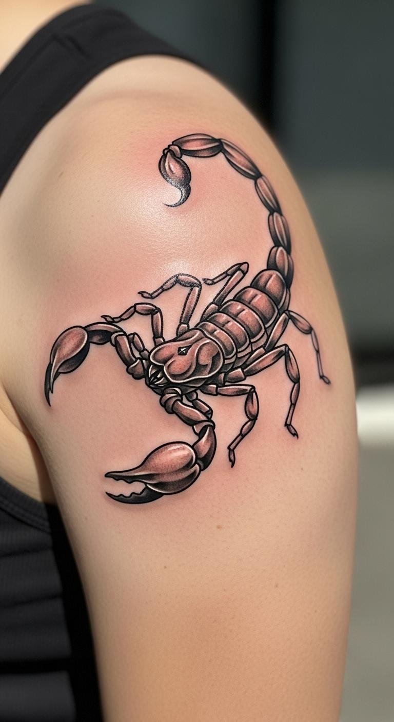 Shoulder scorpion tattoos fit the curve. Map it with string on your body. Choose visible spots. DIY: tape outlines for fit. It shows protection. Sessions $60–$130. Adjust for comfort.