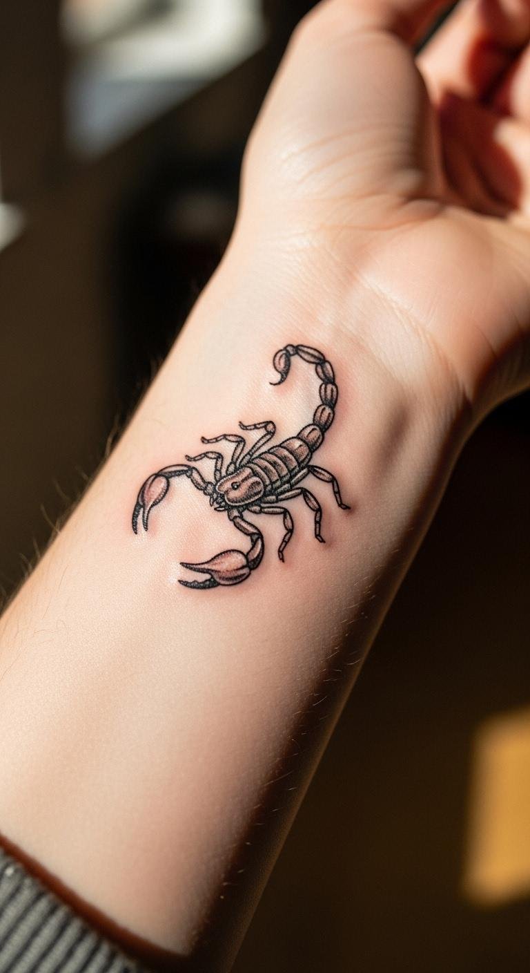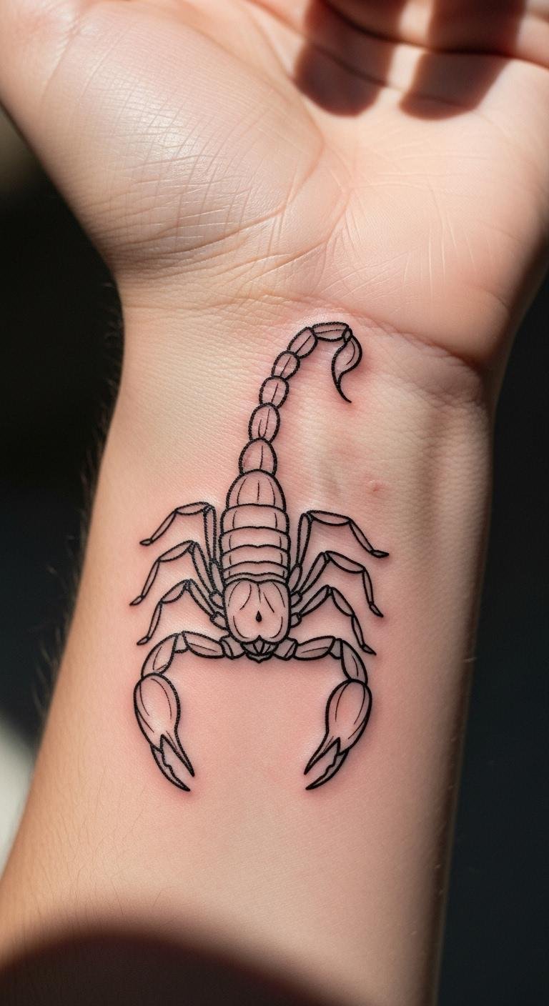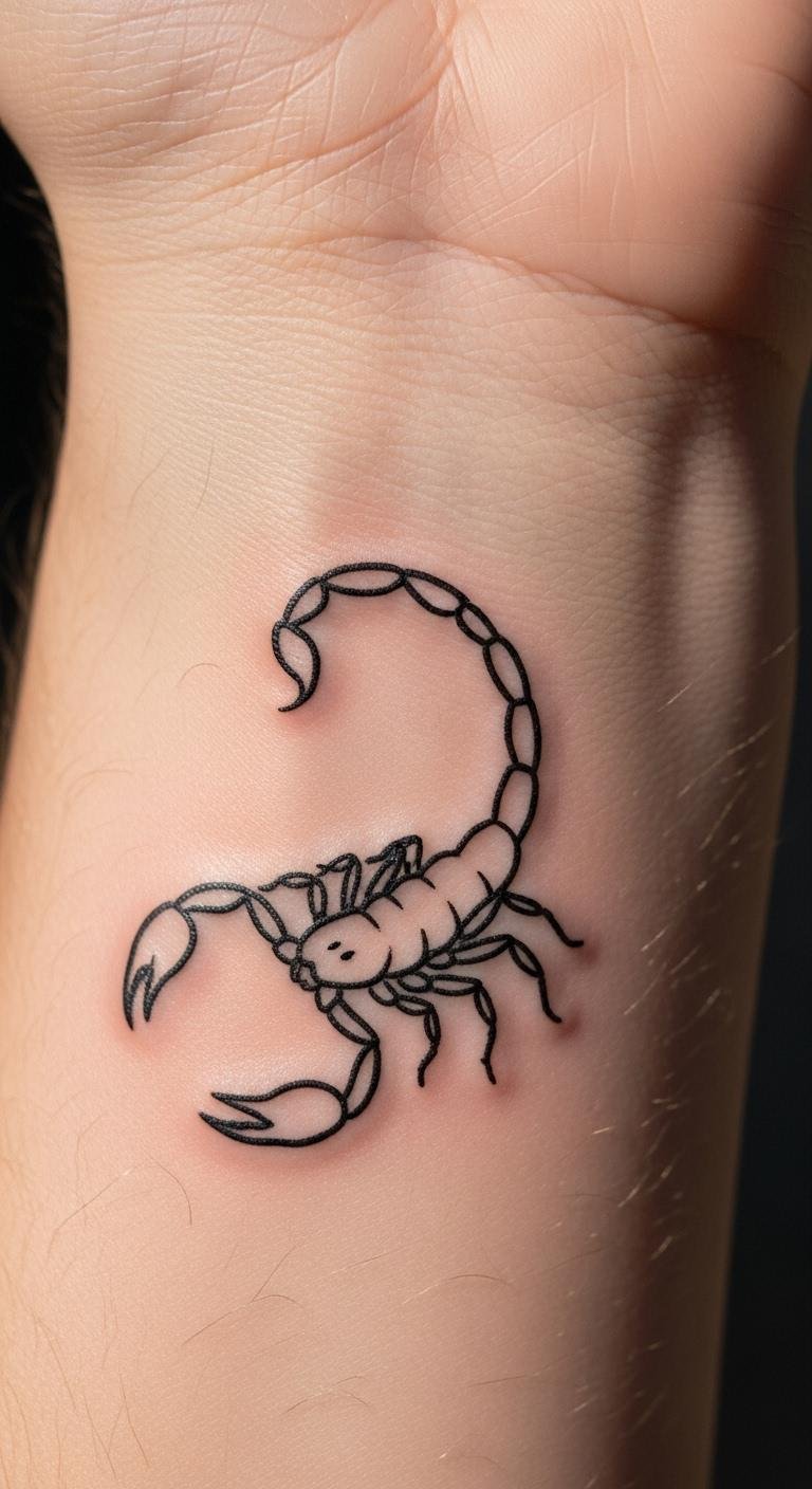 This minimalist wrist scorpion varies the look. Try different line weights in sketches. Adapt from past ideas. Budget: reuse old templates. It offers fresh mystery. Sessions $40–$90. Experiment lightly.