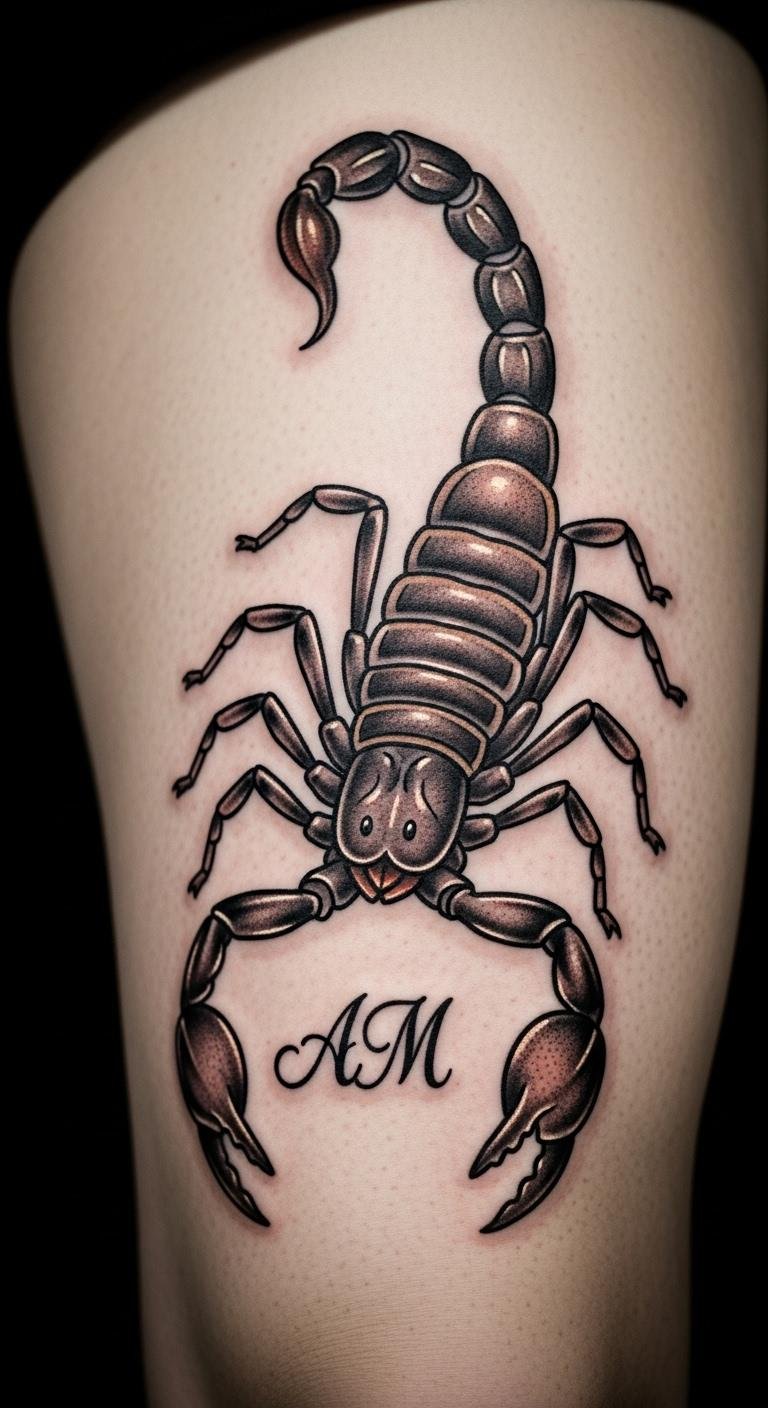 Custom scorpion tattoos tailor to you. Add names to basic sketches. Talk to artists about changes. Free idea: jot notes on your design. Put it on your thigh for privacy. It fits personal stories. Prices $50–$120. Keep it straightforward.