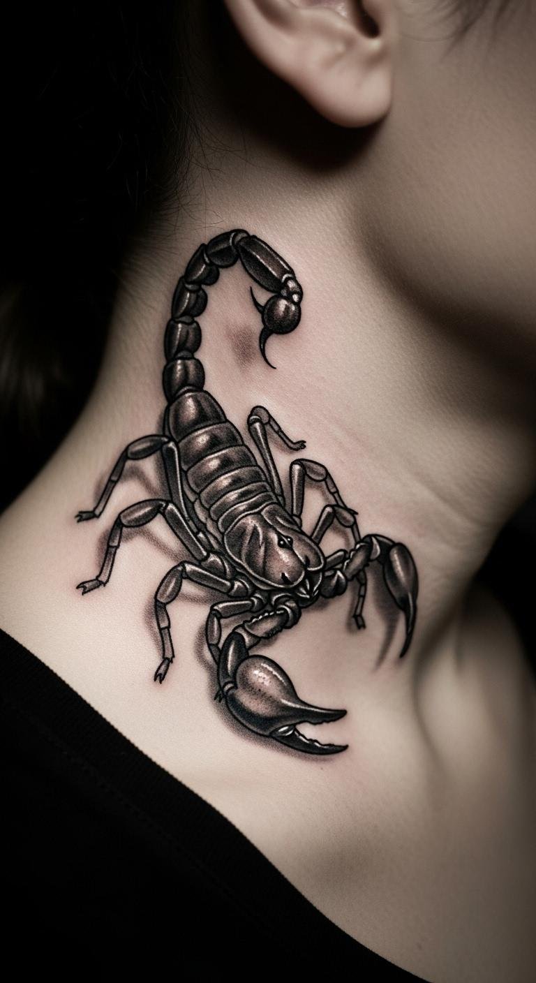 Black and grey scorpion tattoos offer classic vibes. Shade drawings in grey scale. Pick monotone experts. Budget: use graphite pencils for tests. Place on your neck subtly. It keeps it timeless. Prices $50–$110. Add depth.