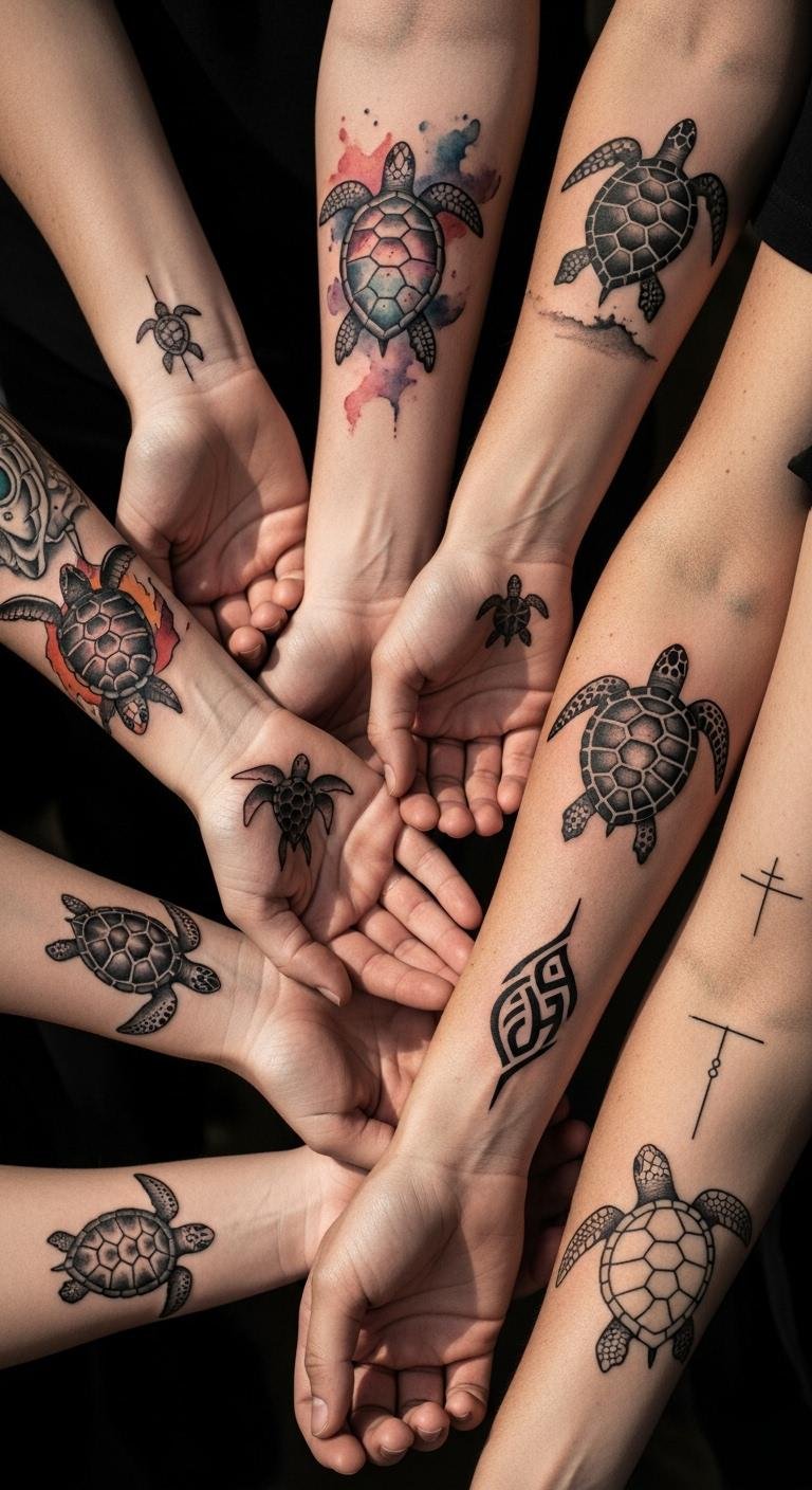 Family-inspired sea turtle tattoo ideas include names or symbols for bonds. They honor roots. Add personal touches. Find family designs. Choose a bonding artist. Sketch together. Bold the family parts. Place centrally. Book as a group. Care shared. This strengthens ties.