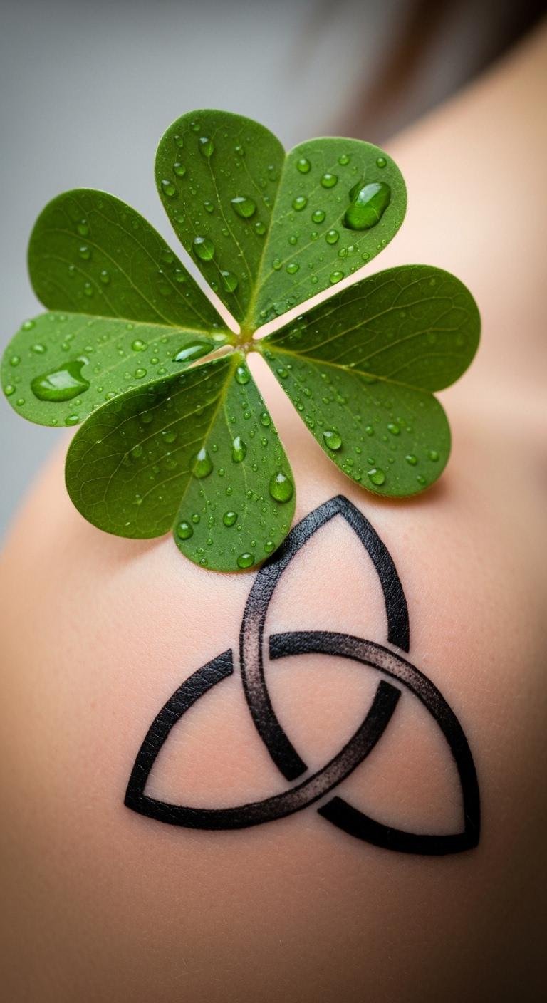 Pair a shamrock with a triquetra for unity themes. It represents interconnected lives. Spot it on your shoulder. Hunt for combo packages. Draw the shapes together at home. Keep lines clean for budget reasons. Schedule early. Protect with shirts. Add triquetra jewelry. Sketch on templates. This design builds connections. Show it to friends.