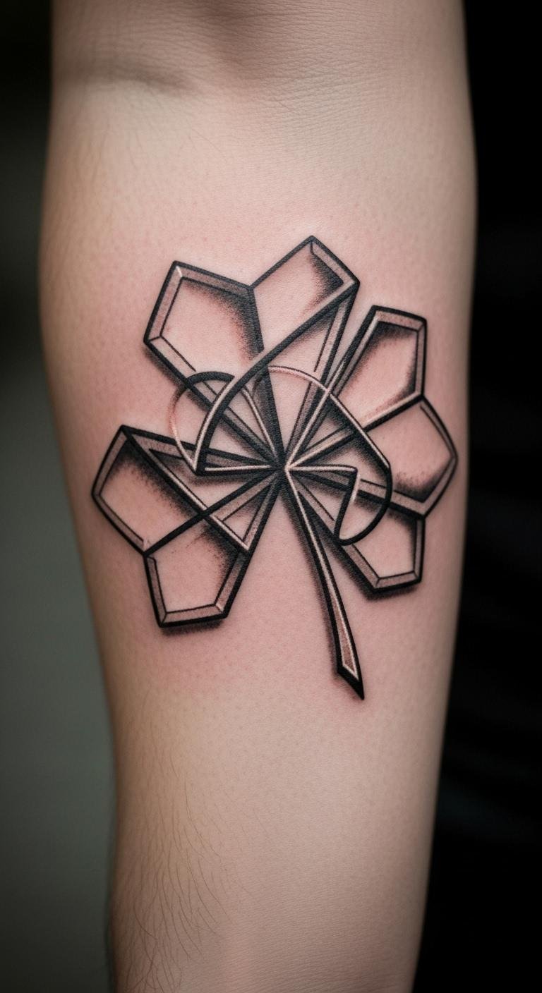 Go geometric with a shamrock for edge. Shapes add a modern edge. Arm placement is key. Look for geometric sales. Build with shapes on paper. Add angles simply . Book easily. Protect as needed. Pair with modern wear. Test designs. This one innovates. Show it off.