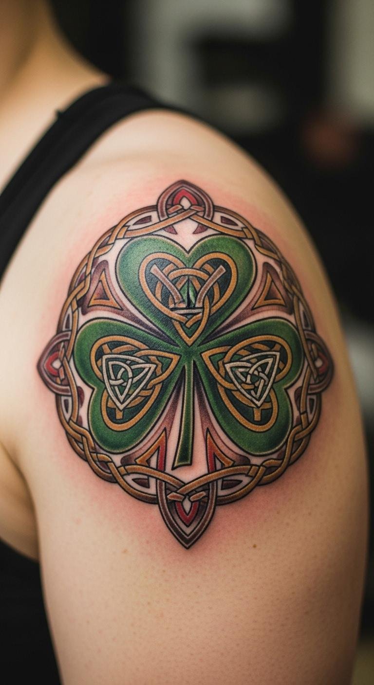 Show heritage pride with a shamrock. It celebrates origins. Shoulder displays it. Look for heritage themes. Trace family symbols. Highlight pride elements . Time it right. Heal with pride. Pair with flags. Draft stories. This one honors. Share your roots.
