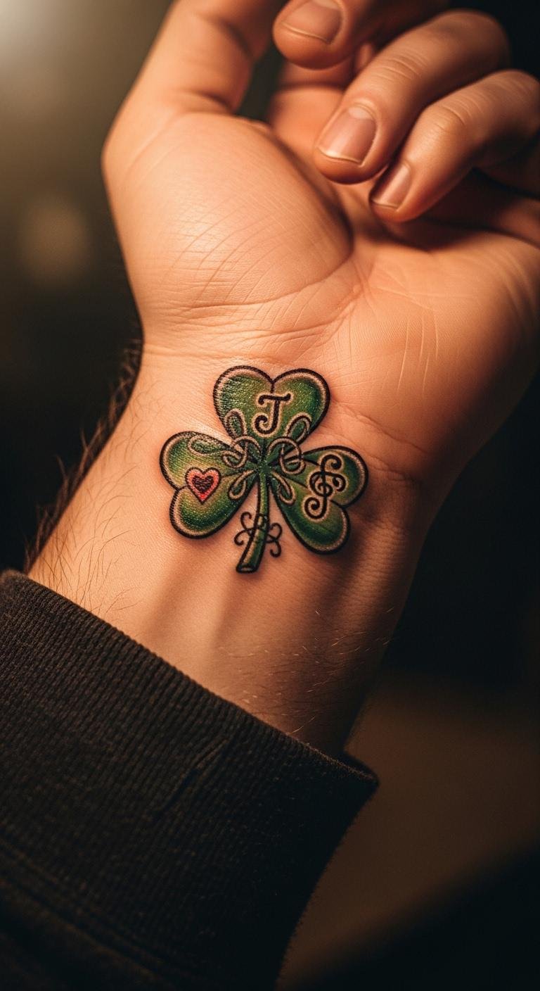 Go minimalist with a shamrock on your wrist. It’s subtle and easy to flaunt. Think of it as a quiet nod to luck. Hunt for deals at walk-in studios. Draw a tiny version on your hand with a fine-tip pen. Pick a small size to keep things cheap. Do this in under an hour. Keep lotion handy for healing. Layer it with bracelets for style. Test spots with temporary markers first. This one fits busy lives. Roll up sleeves to show it off.