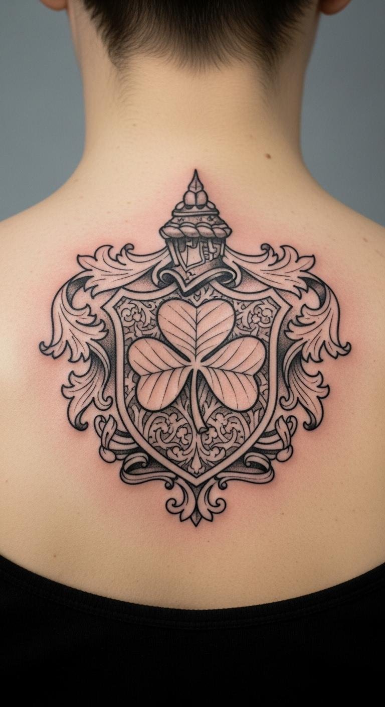 Incorporate a shamrock into your family crest. It honors roots and bonds. Try the back for a larger canvas. Check for group discounts. Design it at home using family photos. Keep details basic for affordability. Plan for a longer session. Care for it with daily washes. Wear themed shirts to complement. Draft ideas on notepaper. This tattoo links generations. Share it at gatherings.