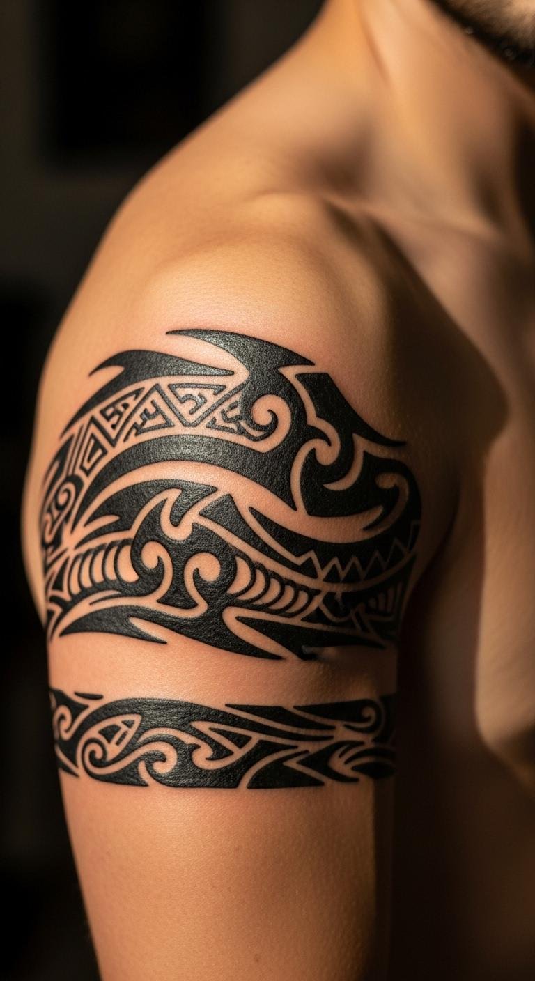 A tribal armband wraps your shoulder with strong, connected lines. It stands for heritage and unity. Start with a basic band design. Customize by adding arrows for direction. Draw it freehand on your skin with washable ink to preview. Use online tutorials for DIY stencils on a budget. Pair it with nature motifs for added depth. Place it midway for comfortable wear. Find local events where artists offer cheap walk-ins. Opt for simple ink to keep it affordable. This choice builds a sense of pride. Adjust the width to fit your style easily.
