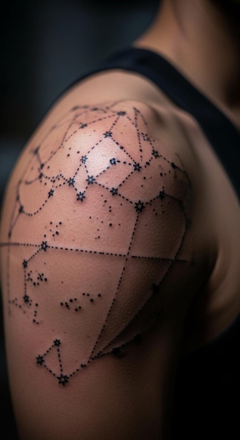 Map constellations on your shoulder for dreams and stars. Choose favorite stars. Add lines. Sketch maps. Use star apps. Blend with tech. Site it starry. Find cosmic offers. Opt for dots. This tattoo guides you. Make it your sky.