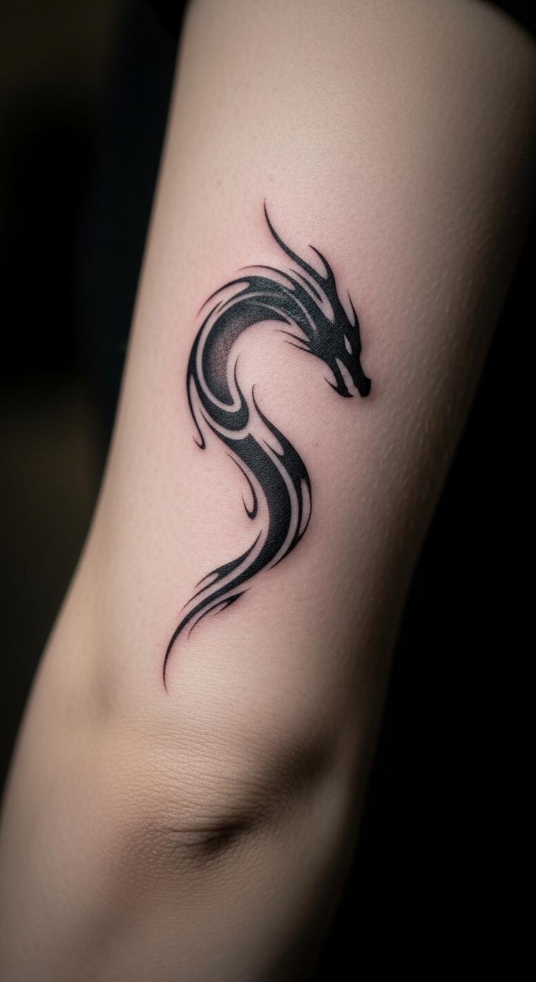 A curved tail dragon on your bicep adds motion. Draw the tail on muscle paper. Opt for curves for economical ink, under $60. Keep it compact. Use bicep stickers. Flex it covered. This tattoo curves with strength. For DIY, bend wire into shapes. It follows your form.