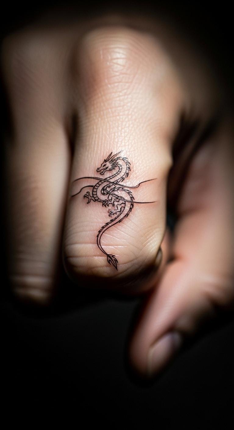 A sleek line dragon on your knuckle stays sharp. Trace lines on your finger. Go for clean cuts for low price, around $40. Make it minute for speed. Use knuckle stickers. Glove it if needed. This design grips attention. For DIY, etch with a fine tool. It points to your path.