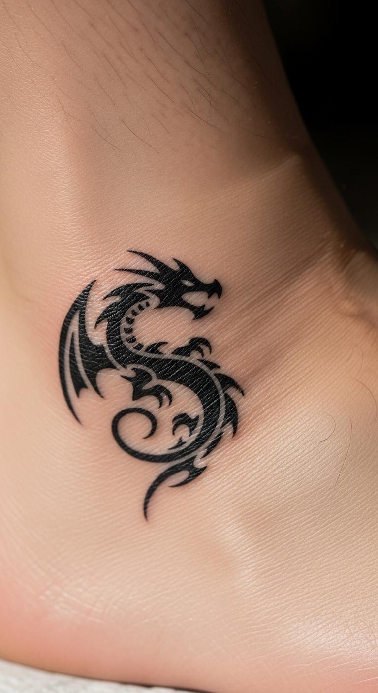 A tribal dragon on your ankle adds a strong edge that’s easy to cover. Sketch the bold lines on your skin with eyeliner first to preview it. Choose a design with thick strokes to make it simple and cheap—artists often do these fast. Aim for 1-2 inches to fit the space and speed up healing in days. Get tribal stickers online for $2 to practice at home. Wrap a bandana around it after to protect the spot without buying extras. This tattoo lets you show off a fierce look when you want. For a DIY spin, trace the pattern on paper and apply with washable ink from craft supplies. It helps you feel steady on your feet right away.