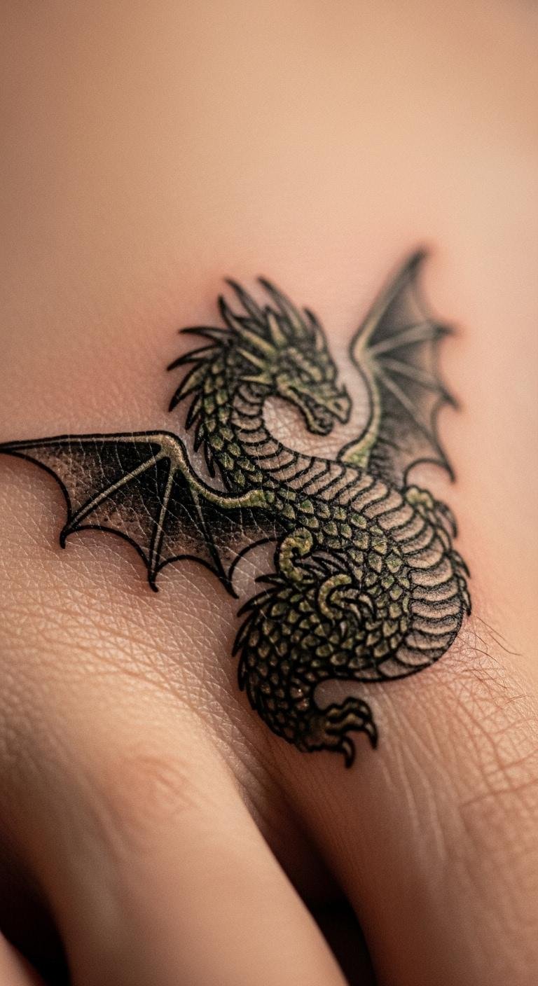 A dragon on your hand heals fast and easy. Outline it on your palm with a pen. Pick a straightforward design for low cost, around $45. Keep it tiny for quick turnaround. Use hand stickers for trials. Wash hands carefully. This tattoo stays with you. For DIY, use hand lotion and ink. It adds grip to your day.