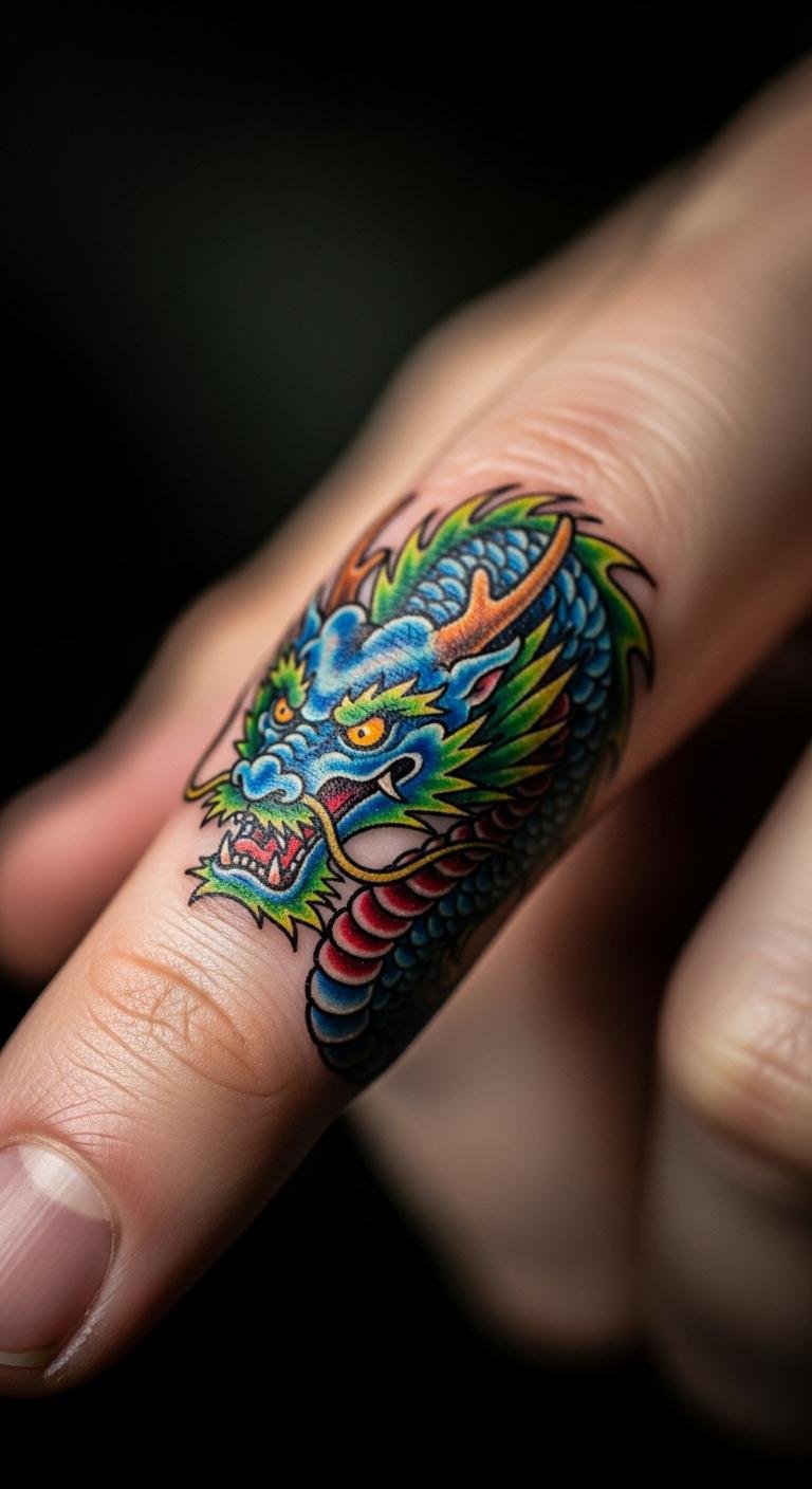 Add color to a finger dragon for a fun, subtle pop. Test it by drawing with colored pencils on your hand at home. Go for basic colors like red and blue to keep costs low, around $60 for the session. Make the dragon tiny, just half an inch, so it fits and heals overnight. Use affordable temporary tattoos from variety stores to try colors first. Keep your finger dry with a plastic wrap you have around. This design pops when you gesture, giving a quick confidence lift. For DIY, mix food coloring with lotion for a safe, wash-off version that lasts hours. It lets you experiment without the commitment.