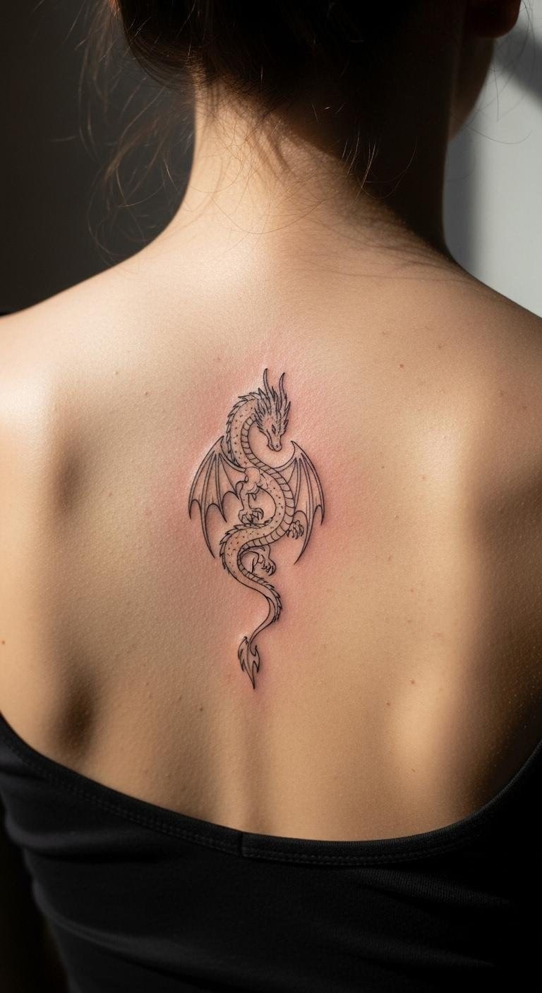 A fine-line dragon on your back offers classic appeal. Sketch it on a large paper to scale it down. Choose thin lines for an economical option, starting at $60. Make it small to heal in days. Get back stickers for trial runs. Wear a shirt to shield it. This tattoo stands out when you want. Try DIY with thin markers for a home version. It adds to your back story simply.