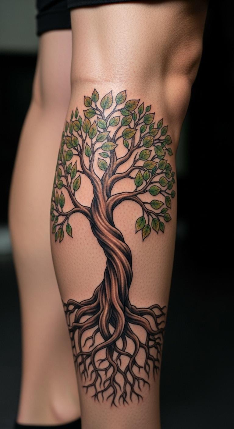 A tree of life on the calf represents strength rootedly. Trees mean stability in small forms. Sketch trees at home for planning. It lowers expenses. Prices start at $90. Opt for basic lines. Bold the key: tree tattoos offer meaning. Look for artist discounts and care for area. DIY with simple drawings. Size it appropriately. Personalize branches. This suits nature fans affordably. Book in advance. Heal with routine. It’s a solid pick.