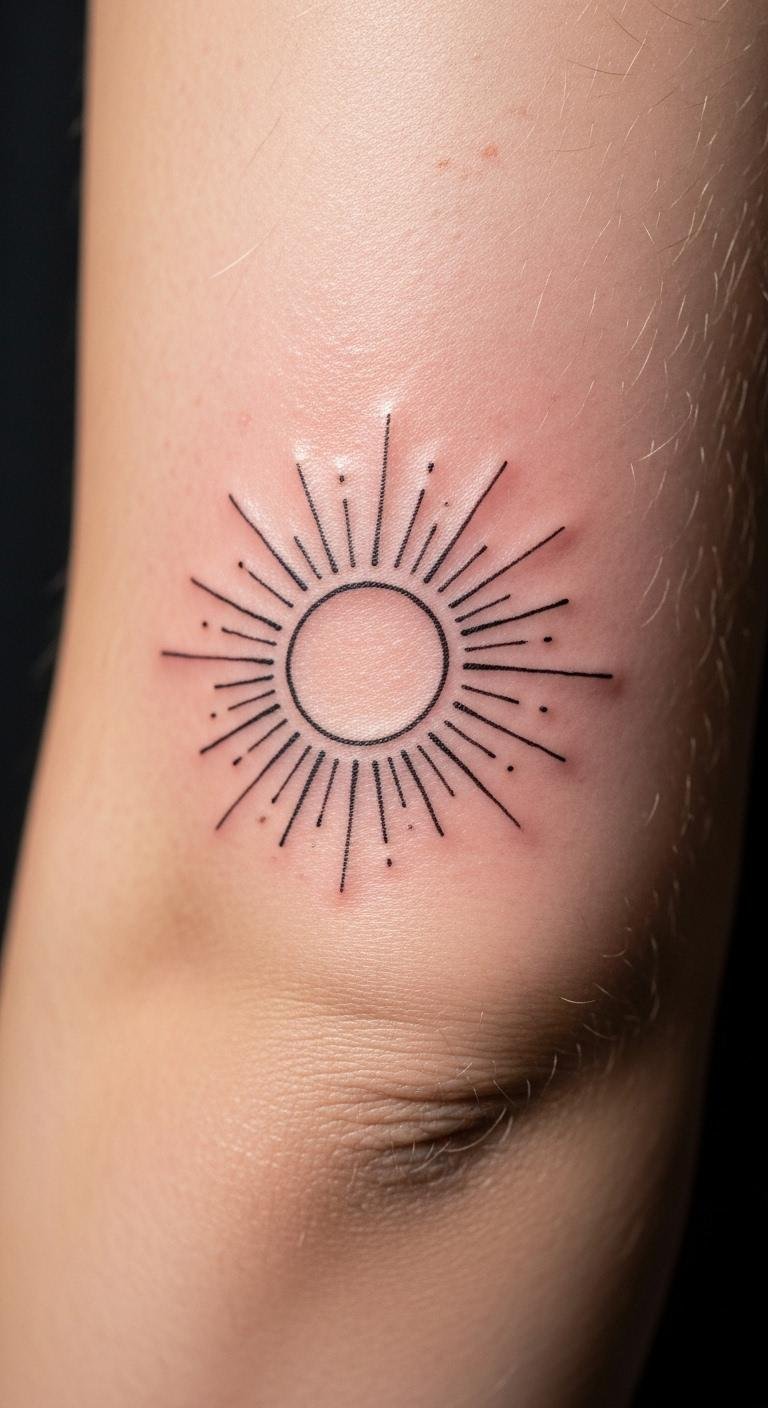 A sun ray on the elbow brings warmth to your moves. Sun rays mean energy in small bursts. Sketch rays at home for ideas. It keeps things cheap. Prices are around $70. Go for straight designs. Bold the key: sun tattoos brighten spots. Search for offers and moisturize. DIY with ray drawings. Make it small. Customize with circles. This fits sunny people. Book early. Protect during healing. It’s a radiant option.