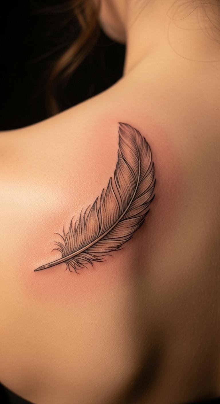 A feather design on the upper back symbolizes freedom lightly. Feathers mean lightness in compact art. Draw feathers first for accuracy. This reduces costs. Fees hit $90. Use fine details. Bold the key: feather tattoos hide well. Look for deals and prep skin. DIY by sketching feathers. Keep it minimal. Add patterns. This idea suits free spirits. Schedule accordingly. Heal with care. It’s a freeing choice.
