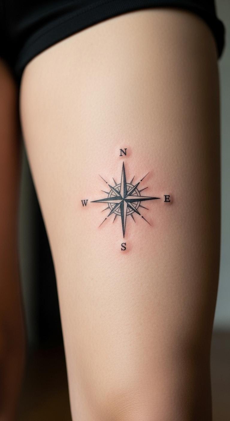 A compass rose on the thigh guides your path privately. Compasses mean direction in neat art. Sketch roses at home for planning. It keeps costs down. Prices start at $70. Opt for clear designs. Bold the key: compass tattoos navigate life. Search for options and prepare. DIY with compass drawings. Keep it compact. Personalize directions. This suits explorers. Book wisely. Heal with routine. It’s a directional pick.