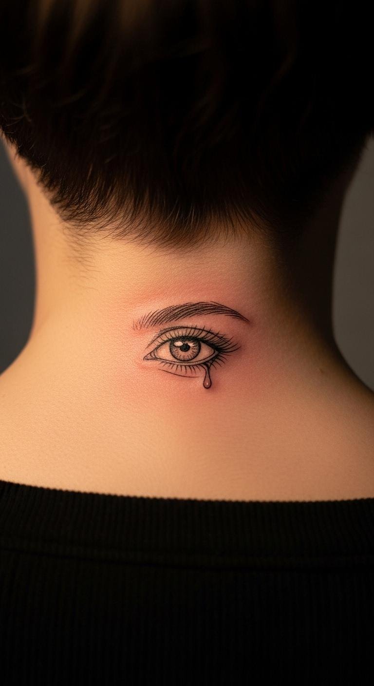 An eye symbol on the nape watches over you discreetly. Eyes mean awareness in tiny designs. Sketch eyes at home for accuracy. It saves on fees. Prices start at $50. Go for detailed irises. Bold the key: eye tattoos protect. Find budget spots and prep. DIY with eye drawings. Keep it small. Add lashes. This works for watchful people. Book early. Heal properly. It’s a vigilant choice.