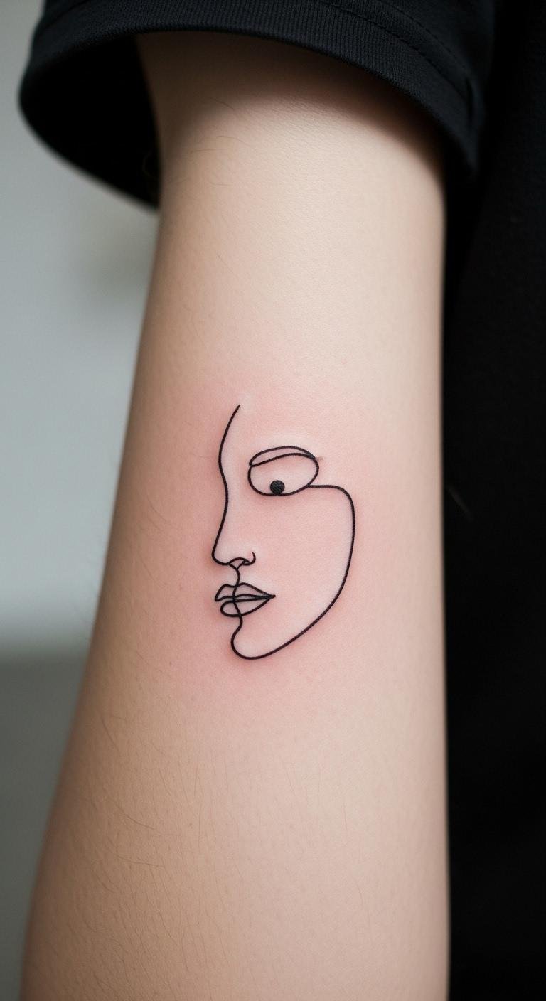A minimalist face on your inner arm adds a mysterious touch to your look. Faces symbolize identity or loved ones in basic forms. Draw a simple outline at home to get it right. This helps avoid changes later. Costs are around $80, so it’s approachable. Use black ink for timeless appeal. Bold the key: minimalist face tattoos blend well with clothing. Check local options and moisturize before going. For DIY fun, practice faces in a sketchbook. Keep it tiny for less time in the chair. Customize with features like eyes. This design works for anyone seeking depth affordably. Look for walk-in deals to save. Aftercare is straightforward with daily lotion. It’s an easy way to personalize.