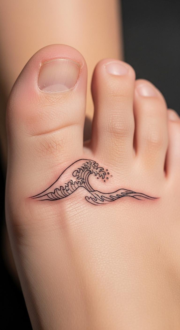 A wave design on the foot represents calm and adventure neatly. Waves evoke the sea in a compact way. Try drawing waves at home to decide. This cuts down on revisions. Expect $60 to $90 fees. Use simple strokes for durability. Bold the key: wave tattoos heal well on feet. Search for affordable parlors and care for your skin. For DIY, trace waves from photos. Keep it under an inch. Personalize with curves. This suits ocean lovers economically. Book for deals. Protect from friction after. It’s an effortless choice.