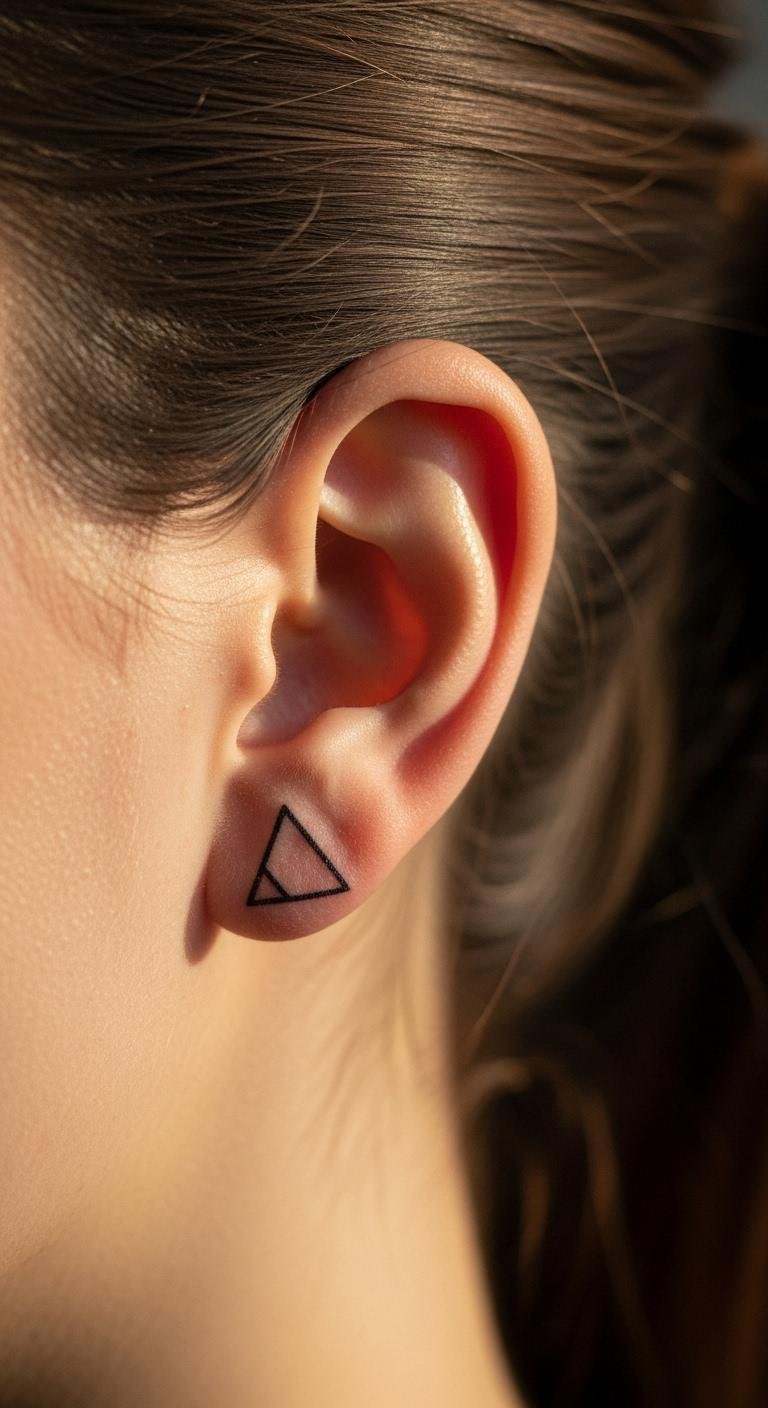 Geometric shapes behind the ear offer modern symmetry. Choose a triangle or circle. Use temporaries for trials. Sketch shapes at home. Ink $30-$60. Clean lines rule. Bold this: Protect the spot. Quick recovery. Easy to conceal. Geometric fun on a dime.