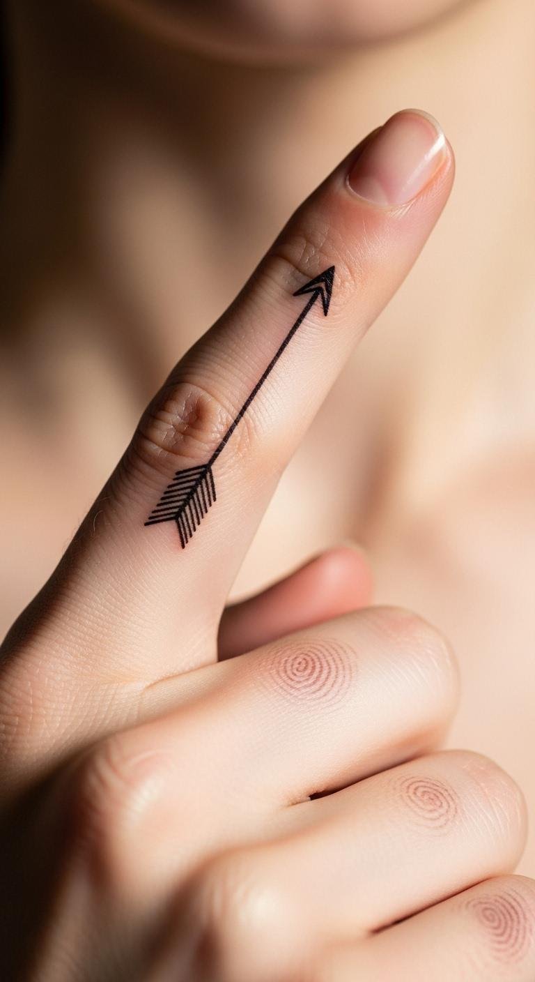 Arrow tattoos on the finger point to direction and progress, super discreet. Size it to fit the finger tip. Start with cheap stickers for practice. Draw arrows at home with rulers for accuracy. Ink costs $30-$50. Straight lines keep it clean. Bold this: Keep hands moisturized. Heal in a week. Mix with rings easily. A simple, budget-friendly motivator.