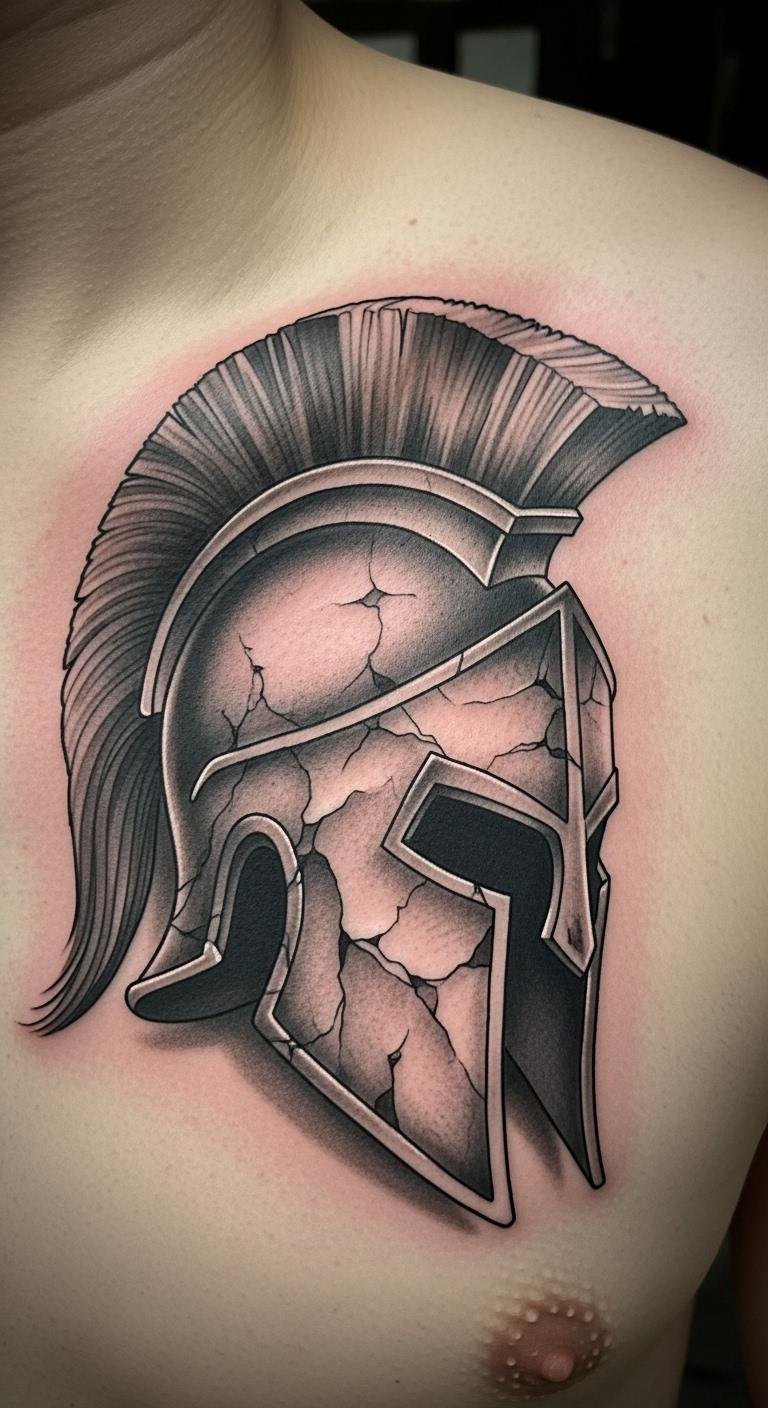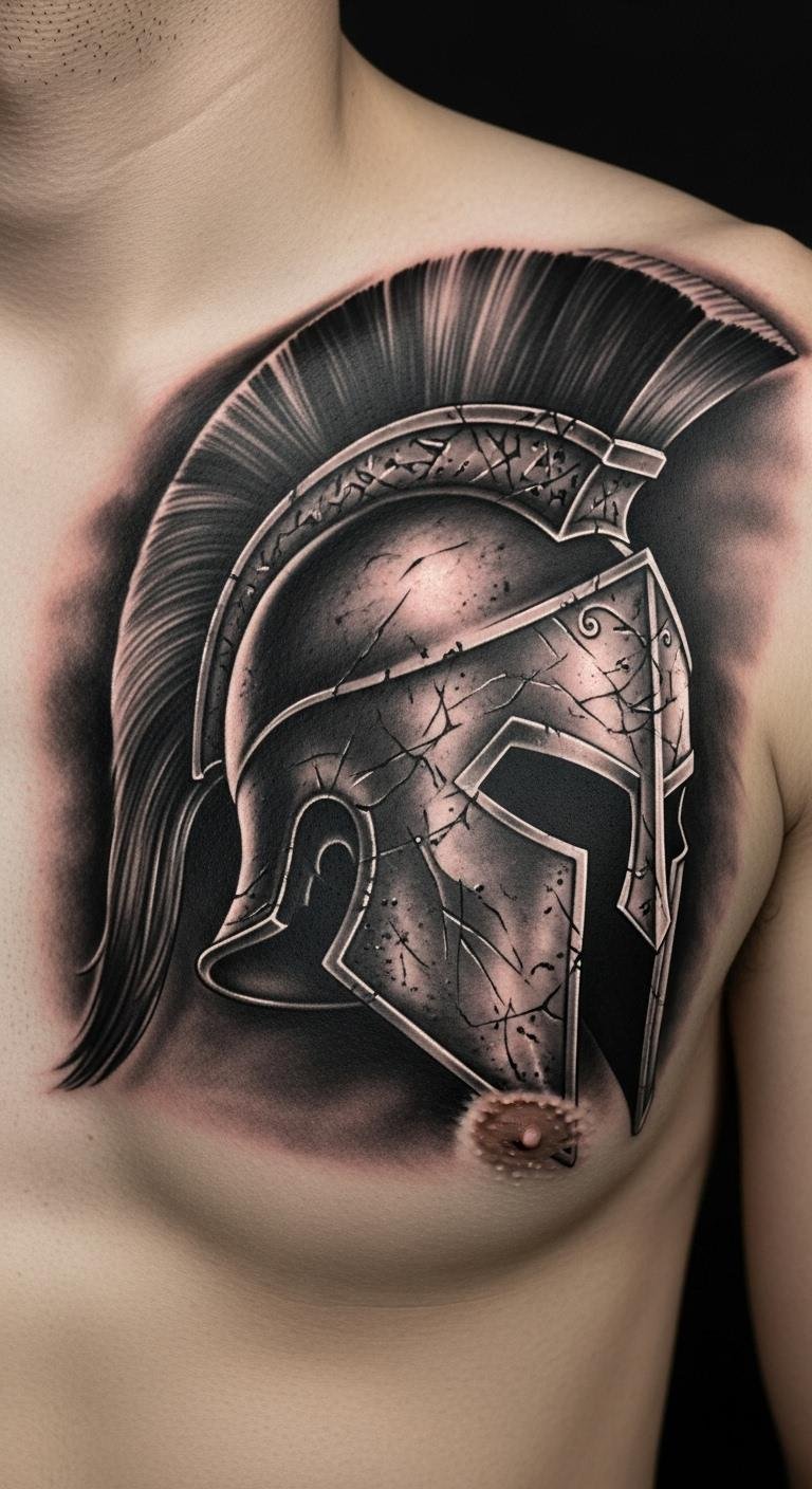 Stick to shades for classic vibe. A black and grey Spartan helmet uses tones for depth. Practice with graphite pencils—budget-friendly. Sessions cost about $100. Choose chest for impact. Include subtle shadows. Check for flash day discounts. Test with grayscale photos. This style ages well. Focus on quick work.