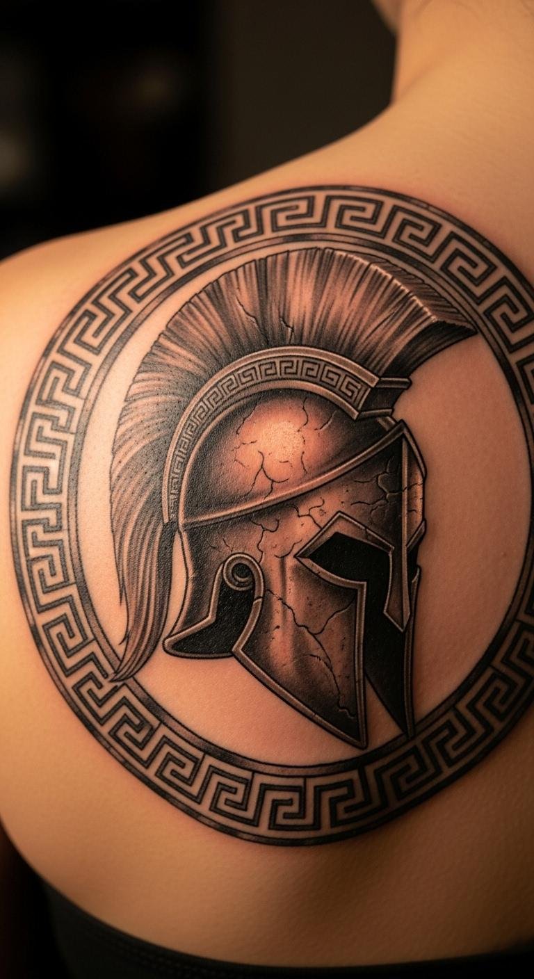 Spartan Helmet with Greek Patterns