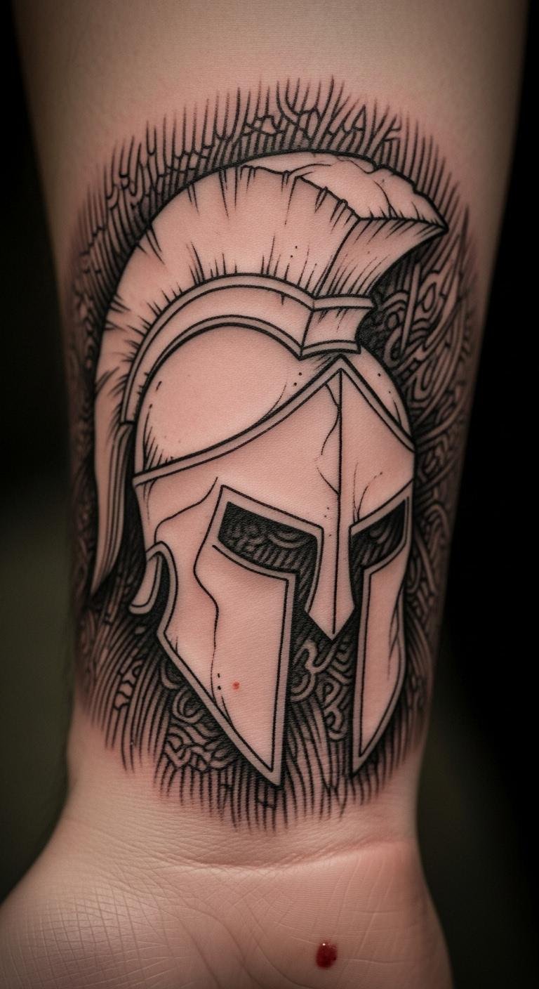Keep it compact for everyday wear. A small forearm Spartan helmet fits neatly. Draw mini versions at home—pens suffice. Under $60 total. Easy to cover or show. Add a dot for personalization. Look for quick-service artists. Use phone cameras for checks. This size suits routines. Plan short trips.