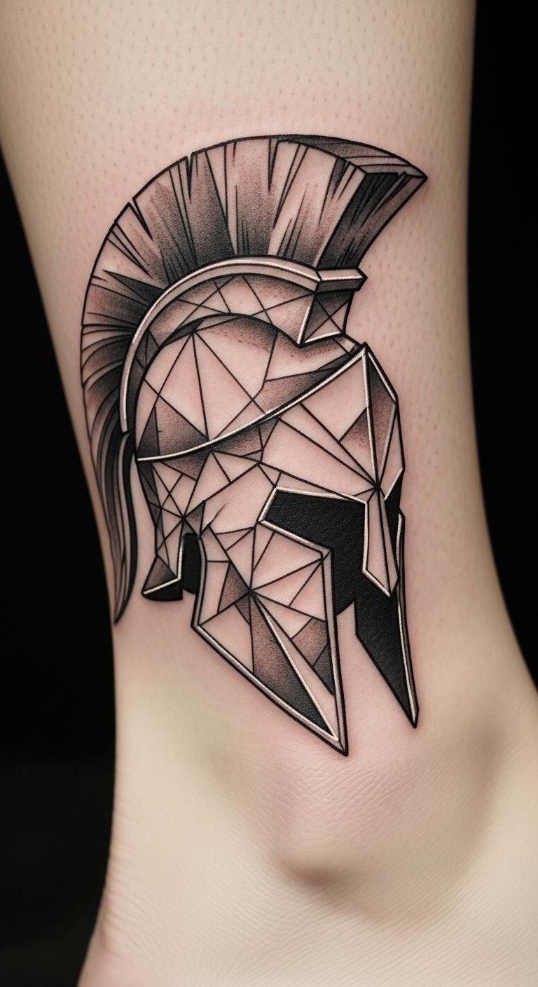 Build with shapes that echo ancient forms. A geometric Spartan helmet uses triangles and lines for a contemporary feel. Draw grids on paper using a ruler—basic tools cost pennies. Budget wisely with sessions under $80 for simple versions. Place it on your ankle for subtle daily wear. Add dots or patterns to customize without extra ink. Search local fairs for affordable artists. Use phone apps to overlay designs on photos before committing—no cost involved. This look pairs well with athletic gear. Keep appointments short to maintain comfort.