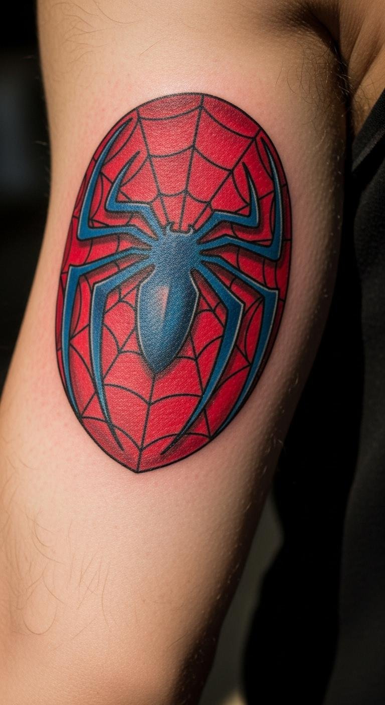 Get the iconic Spiderman logo on your arm for a timeless look. This design pops with its simple spider emblem. Start with a sketch on paper to visualize it. Pick a local artist who specializes in clean lines. For a budget option, use temporary tattoo stickers first to test placement. Keep costs down by choosing black ink only. Add personal flair with a small web extension. Healing is straightforward here. Apply a basic moisturizer twice a day. Wear loose sleeves during recovery. This tattoo shows off your fandom without overwhelming your style.