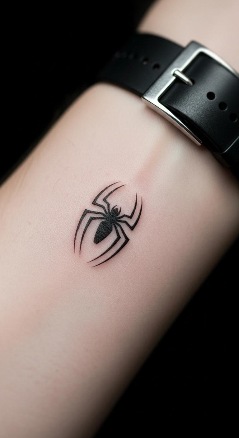 Opt for a minimalist spider emblem on your wrist for subtle appeal. Just a few lines say it all. Sketch it freehand on your skin with a pen. Look for walk-in tattoo spots with low fees. Make a temporary one with eyeliner at home. Grab supplies from your makeup kit. Put it on your dominant hand for daily reminders. Moisturize with petroleum jelly twice daily. Avoid sun exposure early on. This design fits under watches and keeps things low-key.
