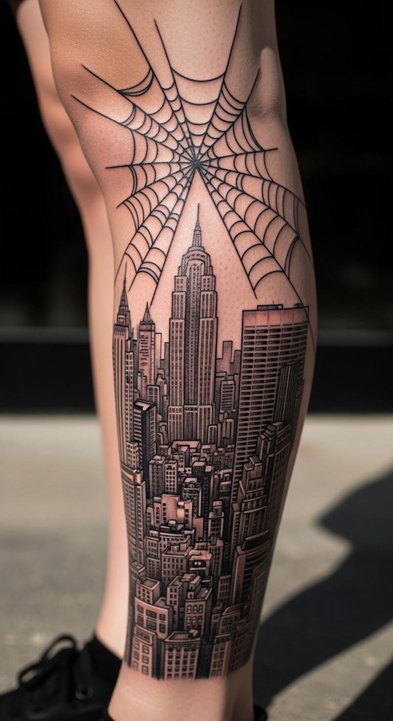 Ink a cityscape on your leg for an urban adventure. Buildings and webs climb up. Map it out with free city sketches online. Search for leg deal artists. Paint a mock-up with fabric markers. Grab them cheap. Place it along your calf for pants coverage. Use bandages for protection. Shower carefully. This tattoo steps up your style.