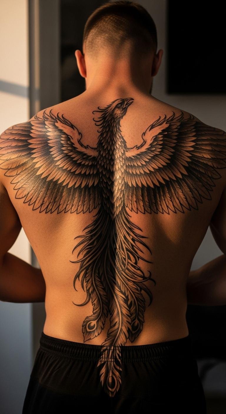 A phoenix rising tattoo symbolizes rebirth and strength. Picture flames wrapping your spine for a dramatic effect. Start by sketching simple flame shapes on paper at home using a pen and notebook—it’s free and fun. Choose a local artist who offers budget sessions under $100 for consultations. Keep designs bold yet simple to avoid extra costs. Opt for black ink to make it pop without color fees. After getting inked, use a basic aloe vera gel from your medicine cabinet for soothing—apply twice daily. This design amps up confidence by showing resilience. Pair it with daily affirmations to connect the tattoo to your life. Go for a single session if possible to save money. Remember, healing takes time, so wear loose shirts to prevent irritation.